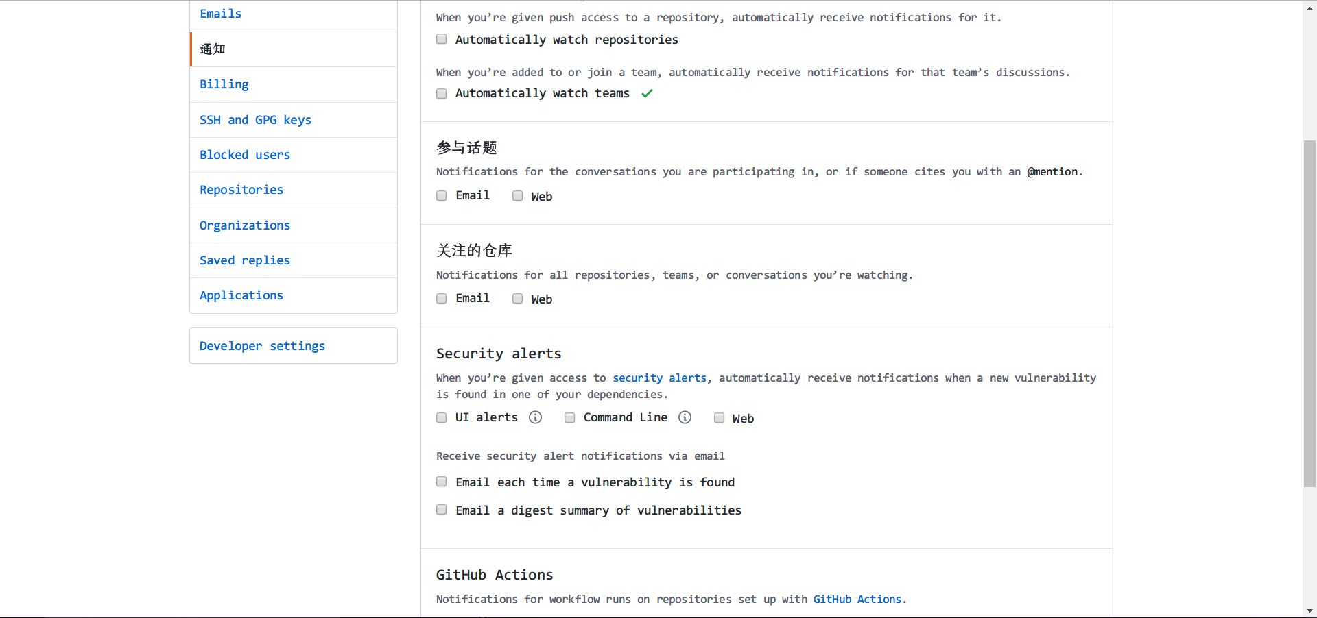 因为我自己是一个无名小卒, 一般没有人会at我, 所以我把全部的更新都关闭掉~见如下图示