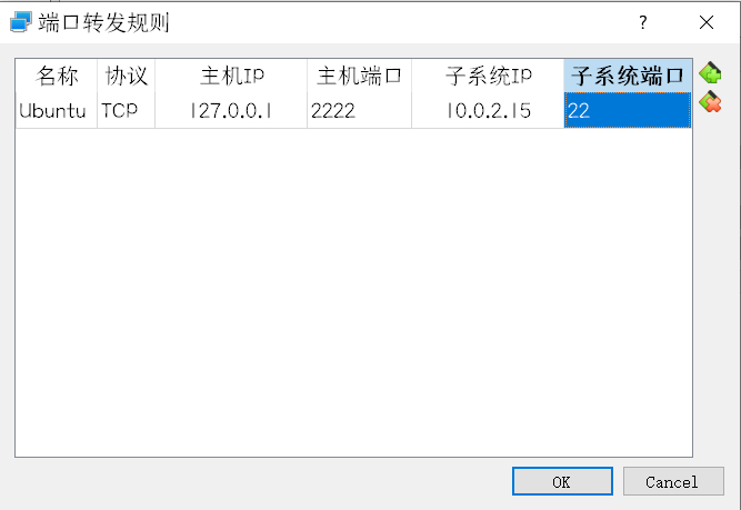 - VBox-设置-网络-网络地址转换NAT-高级-端口转发-配置如下图