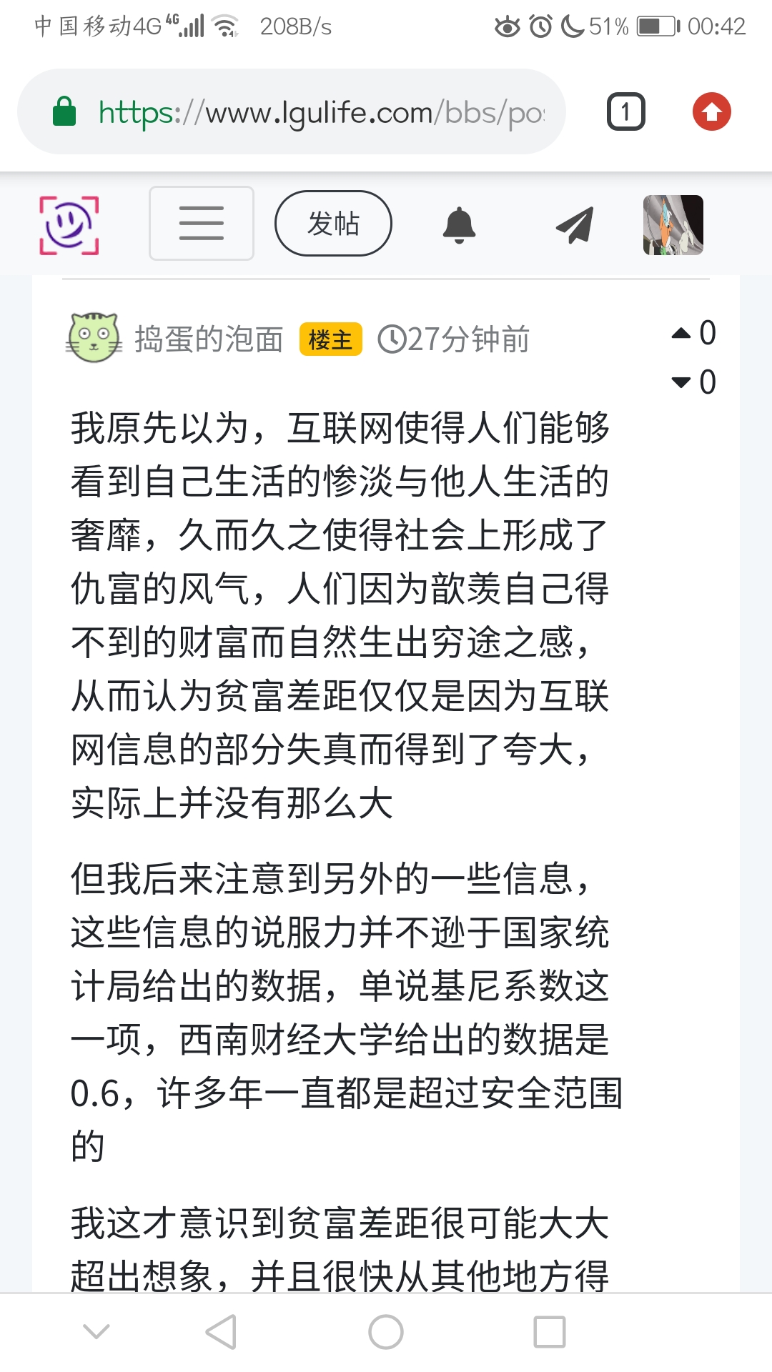 我原先以为,互联网使得人们能够看到自己生活的惨淡与他人生活的奢靡,久而久之使得社会上形成了仇富的风气,人们因为歆羡自己得不到的财富而自然生出穷途之感,从而认为贫富差距仅仅是因为互联网信息的部分失真而得到了夸大,实际上并没有那么大