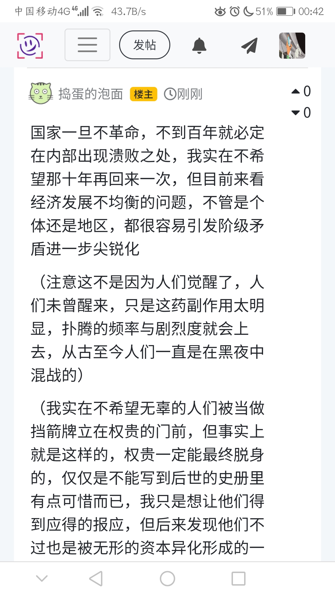 国家一旦不革命,不到百年就必定在内部出现溃败之处,我实在不希望那十年再回来一次,但目前来看经济发展不均衡的问题,不管是个体还是地区,都很容易引发阶级矛盾进一步尖锐化