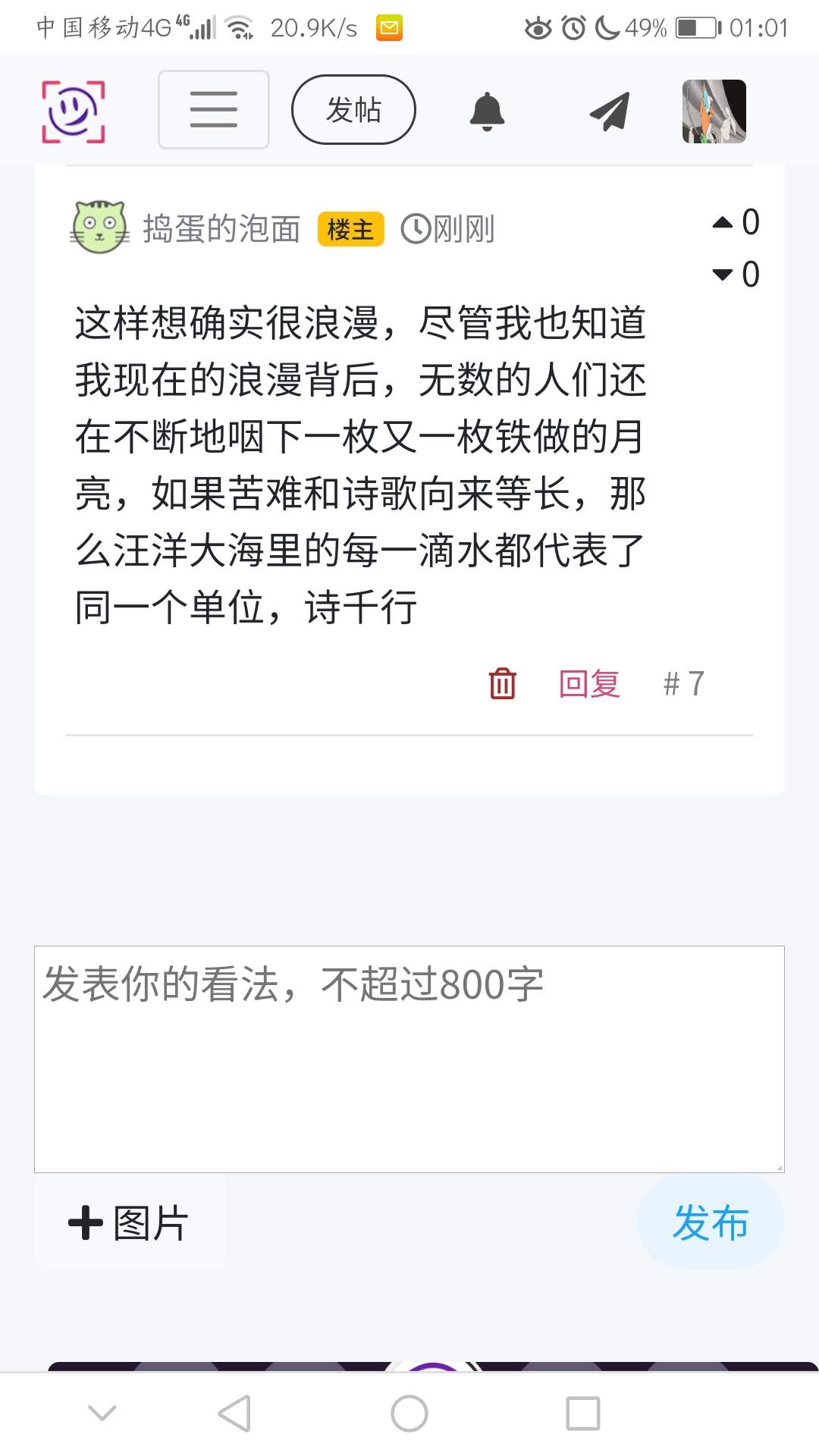 这样想确实很浪漫,尽管我也知道我现在的浪漫背后,无数的人们还在不断地咽下一枚又一枚铁做的月亮,如果苦难和诗歌向来等长,那么汪洋大海里的每一滴水都代表了同一个单位,诗千行
