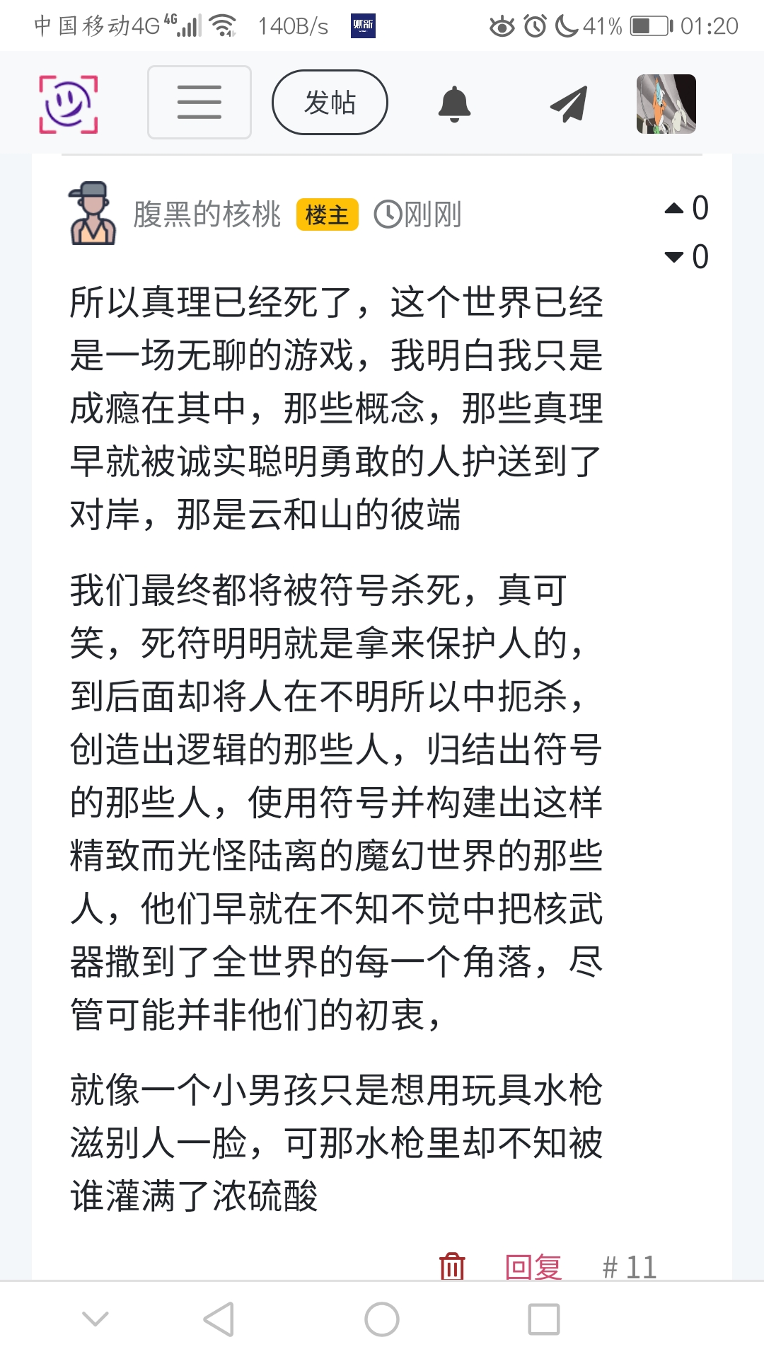 所以真理已经死了,这个世界已经是一场无聊的游戏,我明白我只是成瘾在其中,那些概念,那些真理早就被诚实聪明勇敢的人护送到了对岸,那是云和山的彼端