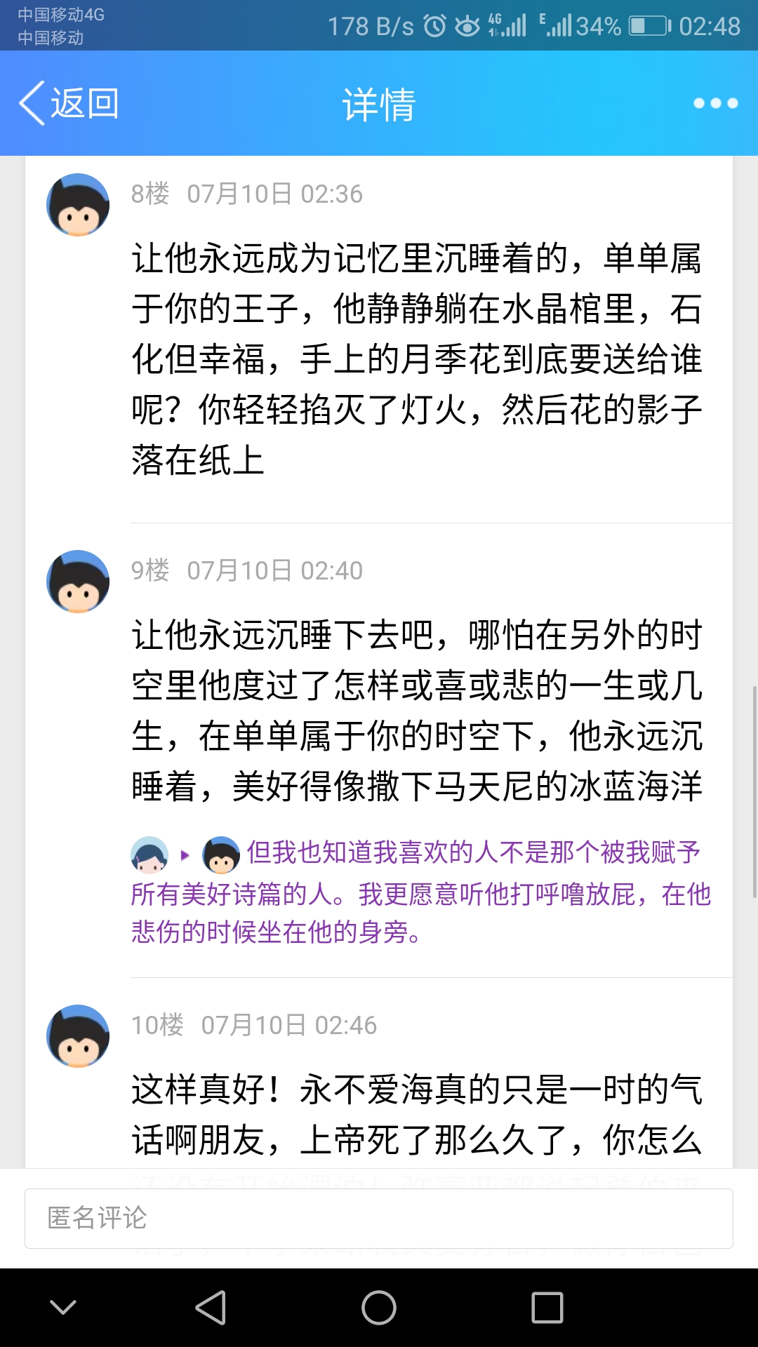 上面的评论我看过了,因为楼中楼容易泄露就不回复啦,谢谢你的回复,注意早点休息啊