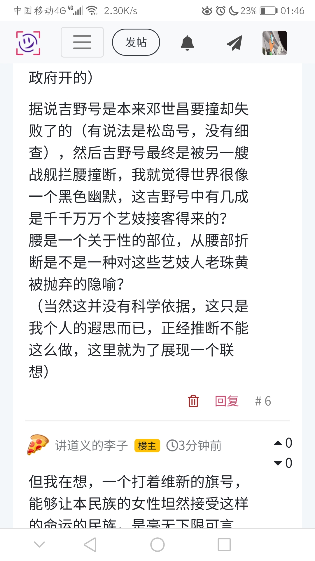 据说吉野号是本来邓世昌要撞却失败了的(有说法是松岛号,没有细查),然后吉野号最终是被另一艘战舰拦腰撞断,我就觉得世界很像一个黑色幽默,这吉野号中有几成是千千万万个艺妓接客得来的?