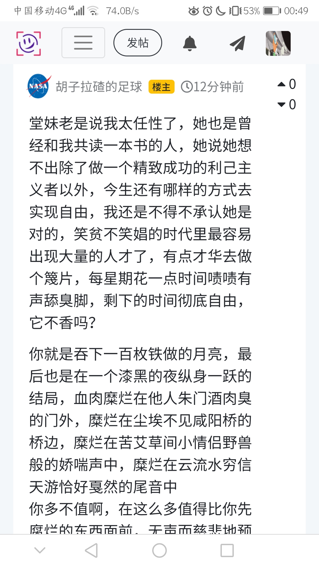 堂妹老是说我太任性了,她也是曾经和我共读一本书的人,她说她想不出除了做一个精致成功的利己主义者以外,今生还有哪样的方式去实现自由,我还是不得不承认她是对的,笑贫不笑娼的时代里最容易出现大量的人才了,有点才华去做个篾片,每星期花一点时间啧啧有声舔臭脚,剩下的时间彻底自由,它不香吗?