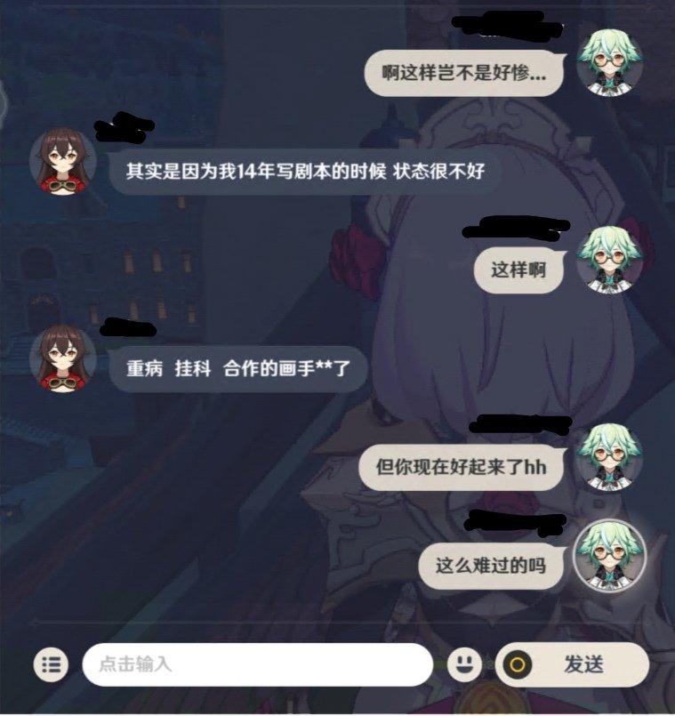 他应该比我大不到三岁,然后想弄个游戏出来,历经6年的删改润色,截至目前有130万的文本量了,目前还在花钱做做一些人物立绘和场景。
