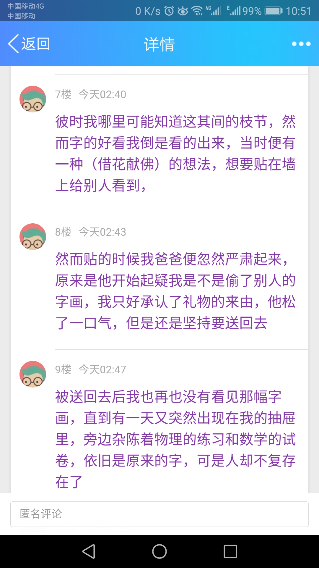 被送回去后我再也没有看见那幅字画,直到有一天又出现在我的抽屉里,旁边杂陈着物理的练习与数学的试卷,仍旧是原来的字,可是人却已经不复存在了…