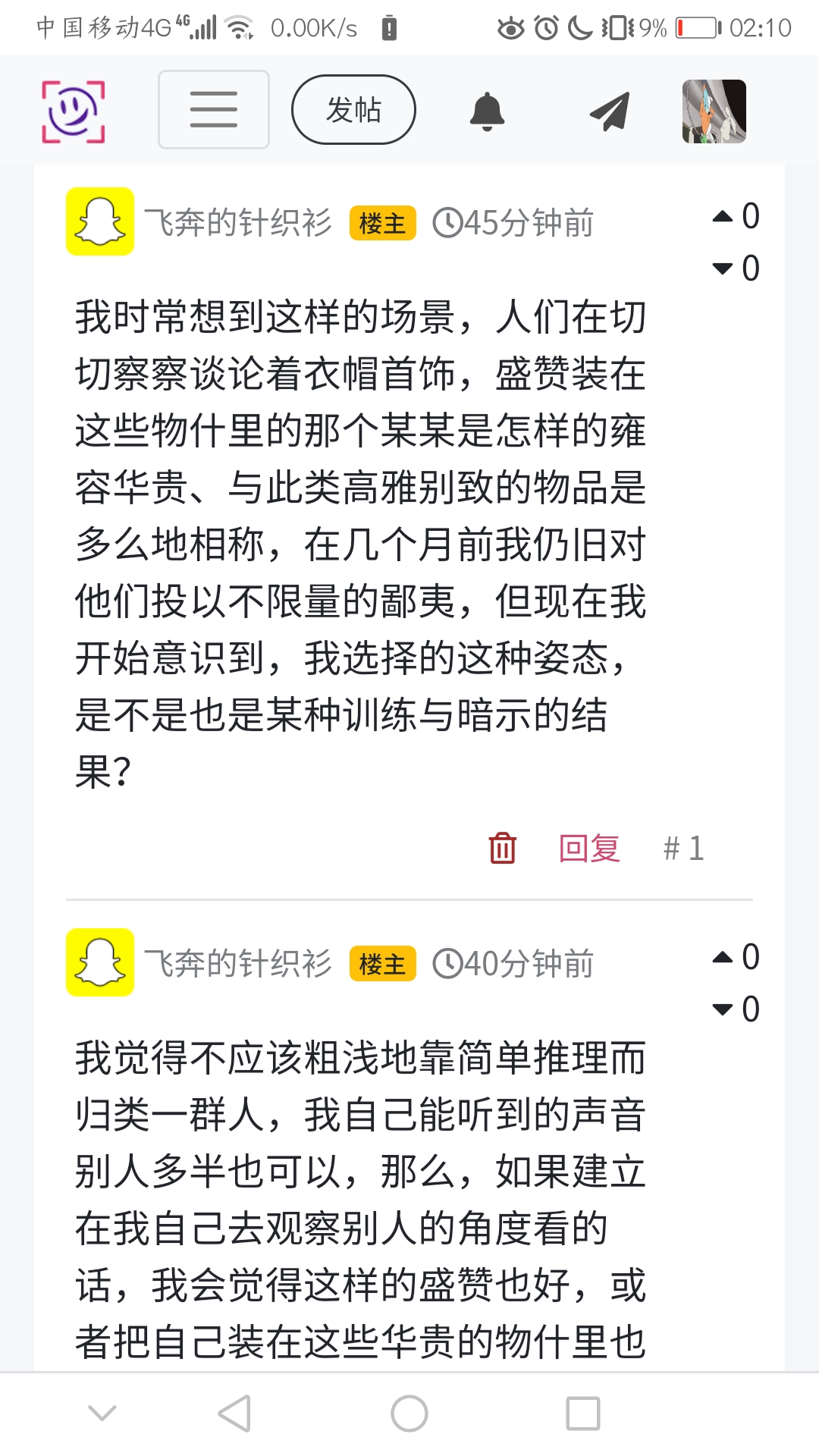 我时常想到这样的场景,人们在切切察察谈论着衣帽首饰,盛赞装在这些物什里的那个某某是怎样的雍容华贵、与此类高雅别致的物品是多么地相称,在几个月前我仍旧对他们投以不限量的鄙夷,但现在我开始意识到,我选择的这种姿态,是不是也是某种训练与暗示的结果?