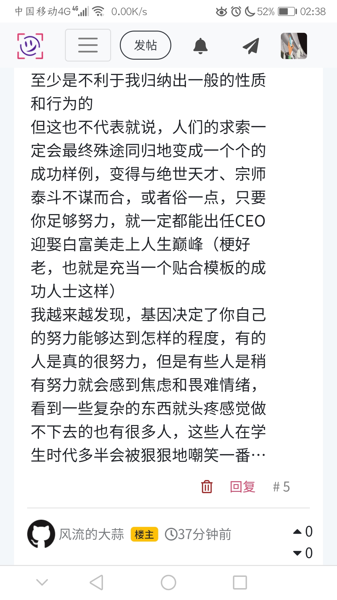 我越来越发现,基因决定了你自己的努力能够达到怎样的程度,有的人是真的很努力,但是有些人是稍有努力就会感到焦虑和畏难情绪,看到一些复杂的东西就头疼感觉做不下去的也有很多人,这些人在学生时代多半会被狠狠地嘲笑一番…