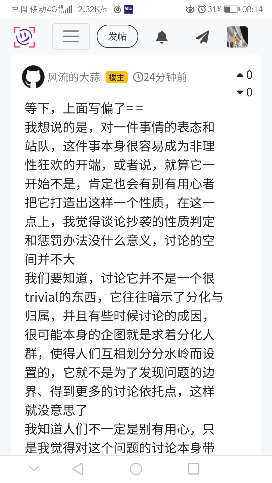 我想说的是,对一件事情的表态和站队,这件事本身很容易成为非理性狂欢的开端,或者说,就算它一开始不是,肯定也会有别有用心者把它打造出这样一个性质,在这一点上,我觉得谈论抄袭的性质判定和惩罚办法没什么意义,讨论的空间并不大