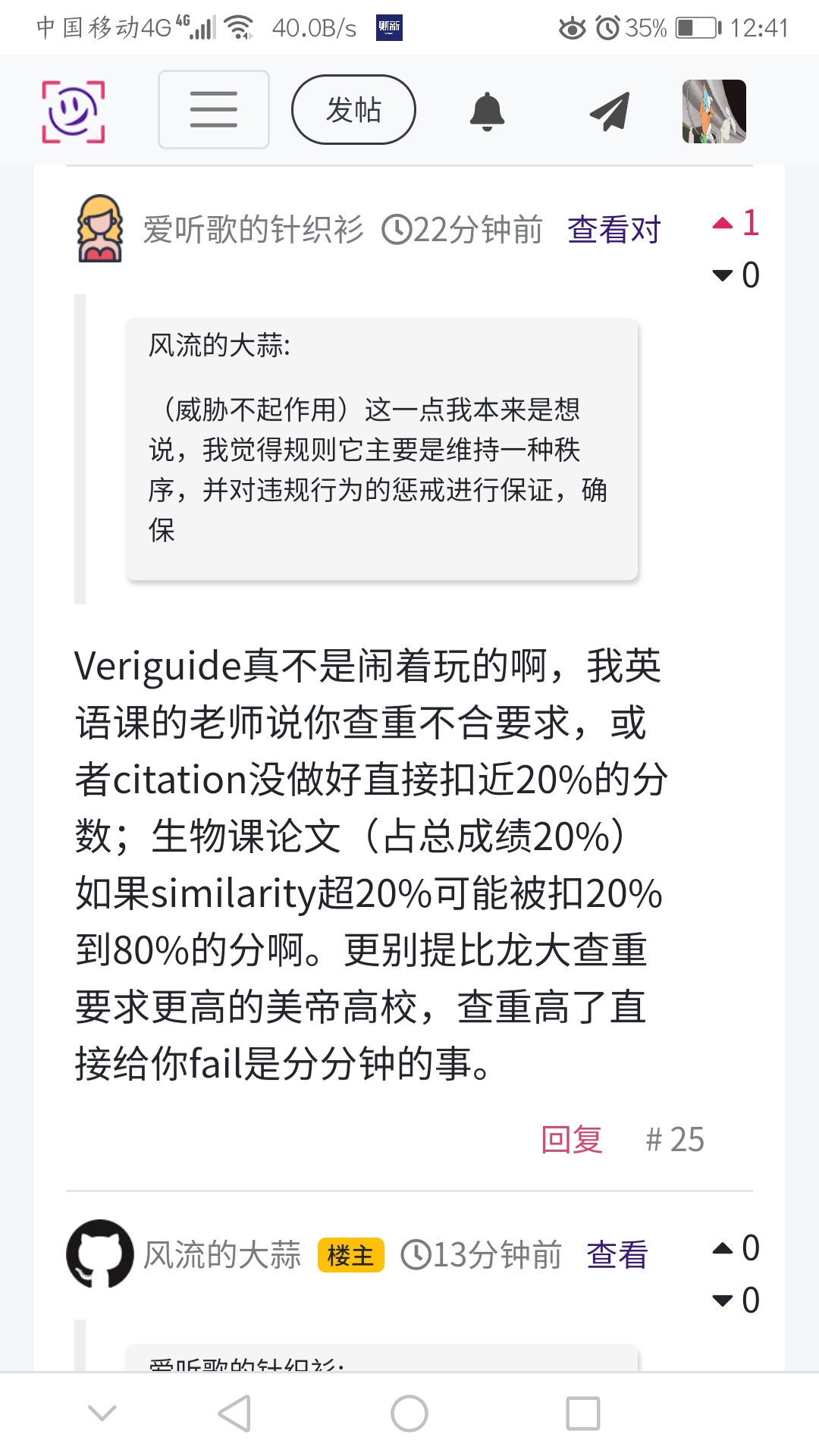 Veriguide真不是闹着玩的啊,我英语课的老师说你查重不合要求,或者citation没做好直接扣近20%的分数;生物课论文(占总成绩20%)如果similarity超20%可能被扣20%到80%的分啊。更别提比龙大查重要求更高的美帝高校,查重高了直接给你fail是分分钟的事。