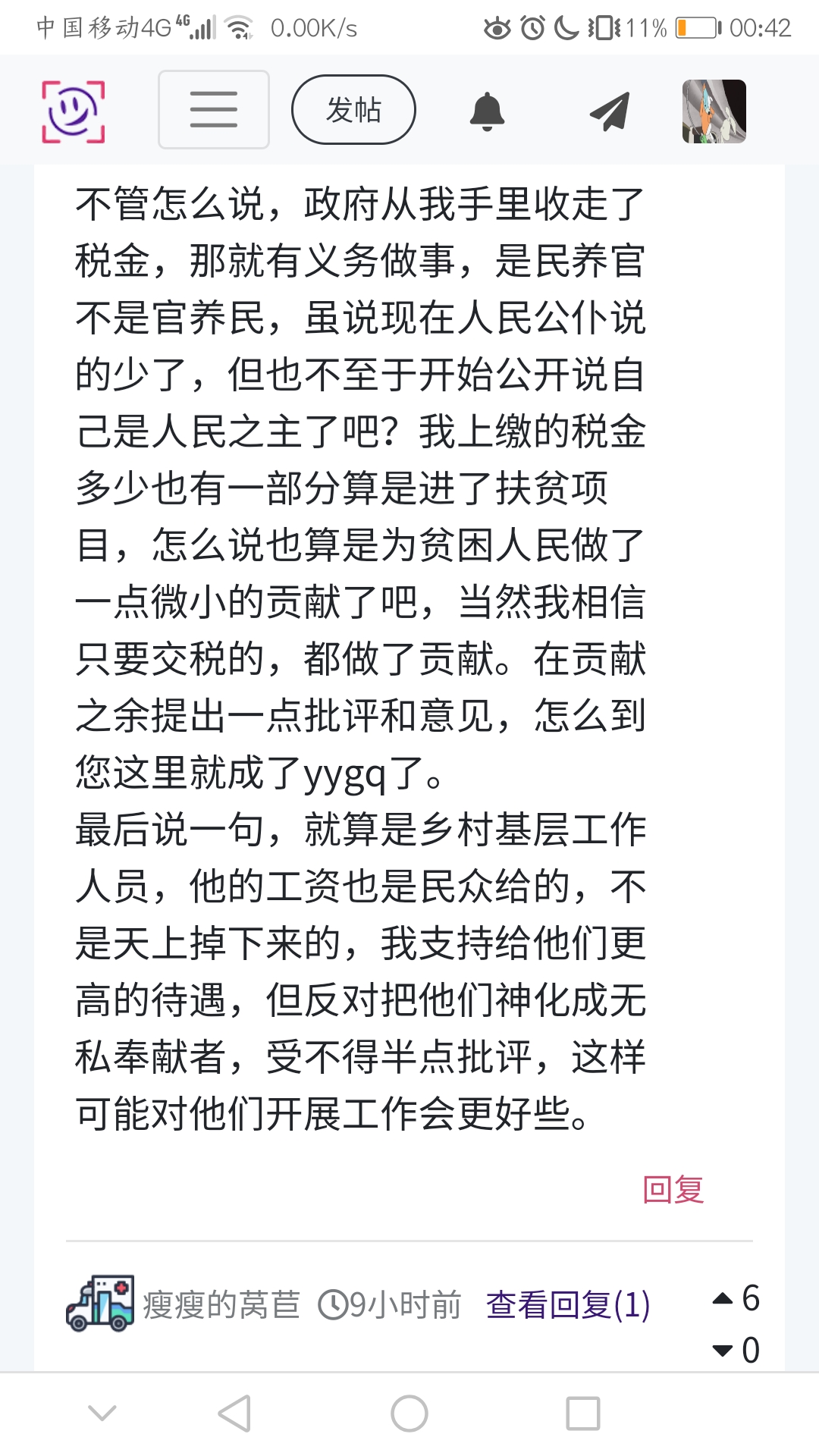 不管怎么说,政府从我手里收走了税金,那就有义务做事,是民养官不是官养民,虽说现在人民公仆说的少了,但也不至于开始公开说自己是人民之主了吧?我上缴的税金多少也有一部分算是进了扶贫项目,怎么说也算是为贫困人民做了一点微小的贡献了吧,当然我相信只要交税的,都做了贡献。在贡献之余提出一点批评和意见,怎么到您这里就成了yygq了。