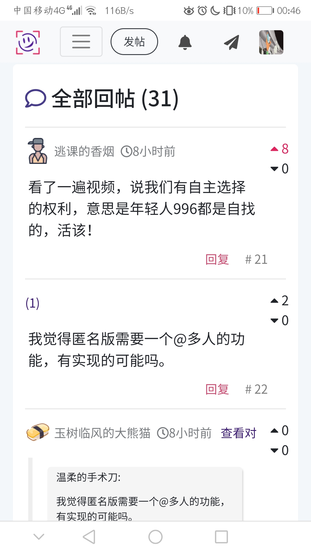 我觉得匿名版需要一个@多人的功能,有实现的可能吗。