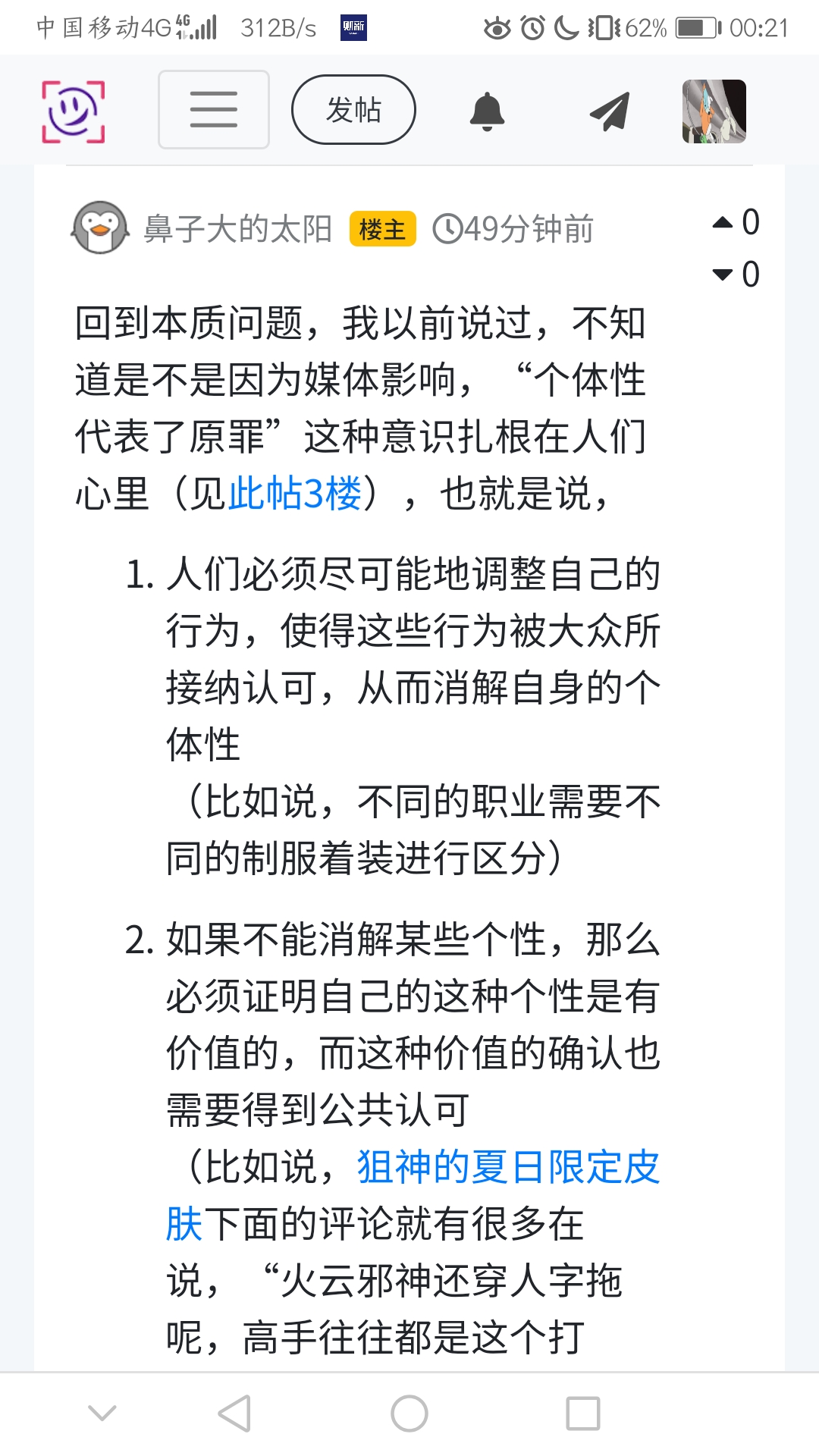 回到本质问题,我以前说过,不知道是不是因为媒体影响,“个体性代表了原罪”这种意识扎根在人们心里(见此帖3楼),也就是说,