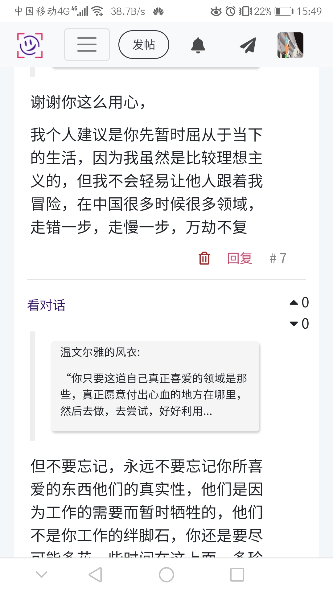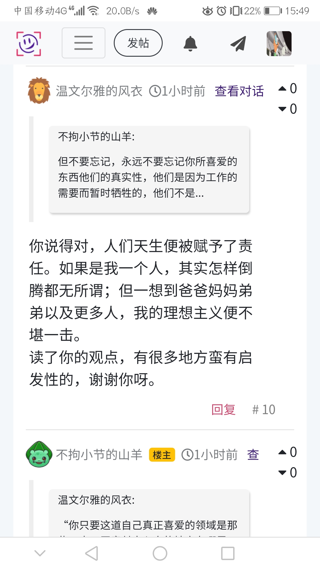 你说得对,人们天生便被赋予了责任。如果是我一个人,其实怎样倒腾都无所谓;但一想到爸爸妈妈弟弟以及更多人,我的理想主义便不堪一击。