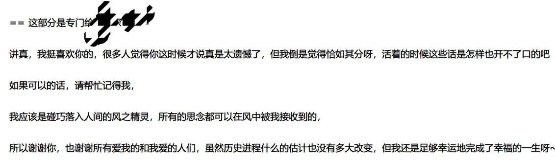 当初这段应该是写给他的,算是告白也不够准确,应该说是希望他能负责起来,通过一个公正的第三方视角来审视我的一生吧。