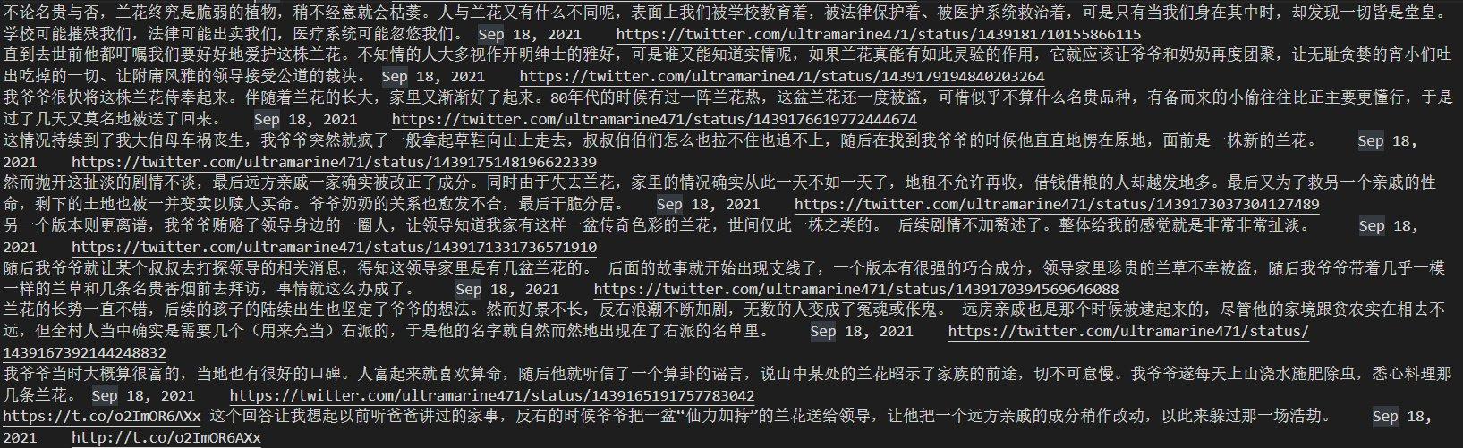 具体见:https://web.archive.org/web/20220316092014/https://github.com/Linkeer365/get_tweets/tree/main/tweets_organization