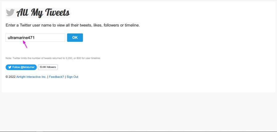 首先我们用这个https://web.archive.org/web/20220315175419/https://www.allmytweets.net/connect/登录,这边我预设了该网站的可信性,有疑虑的可以先不用。 我这边用我的来示范下。