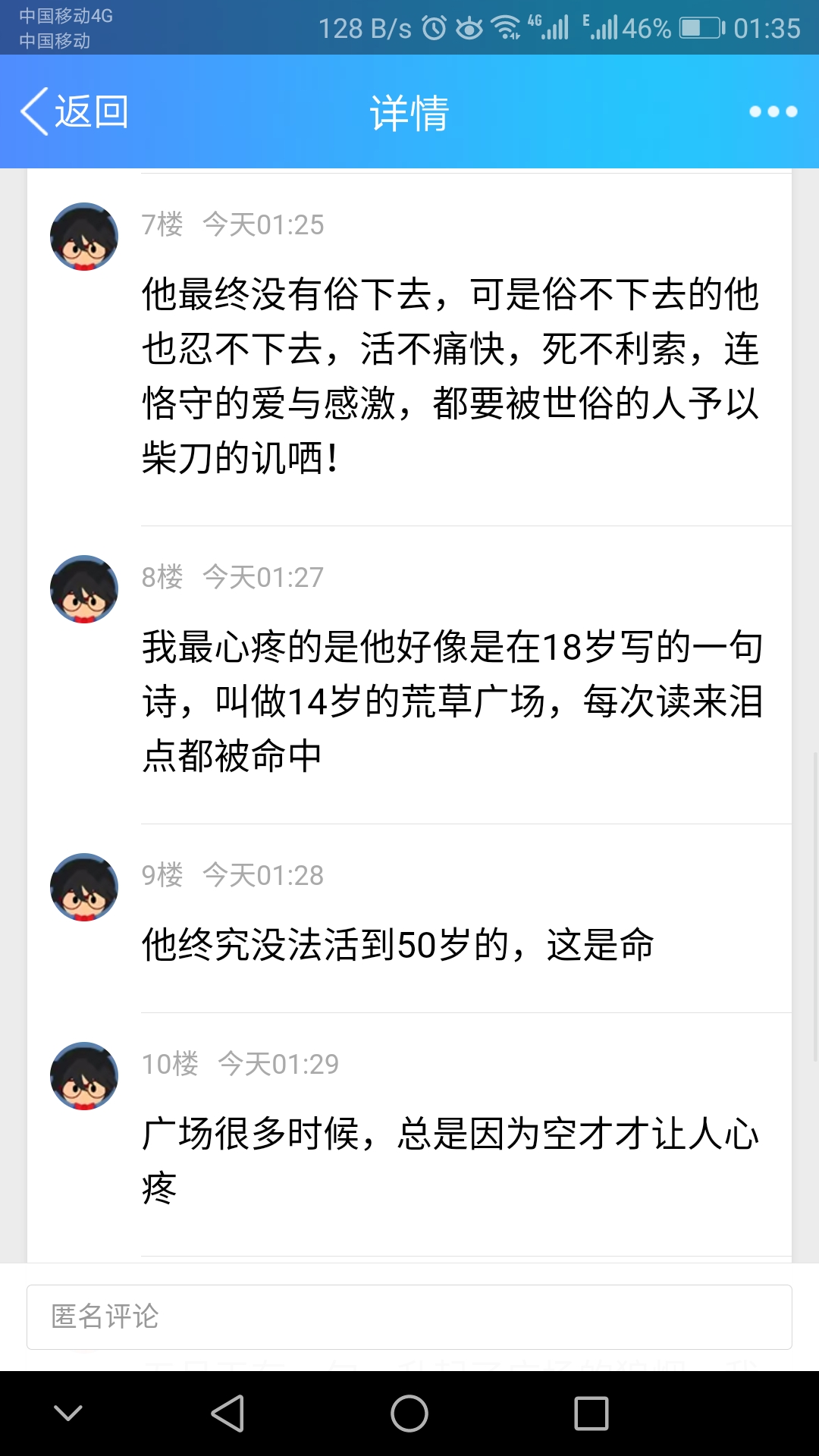 我最心疼的是他在18岁写的一首诗,叫做14岁的荒草广场,每次读来泪点都被命中