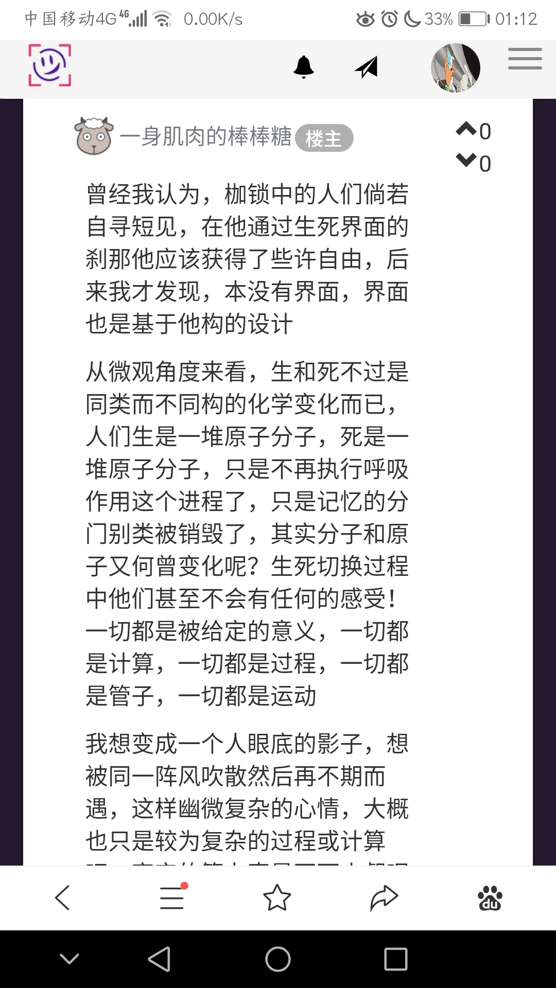曾经我认为,枷锁中的人们倘若自寻短见,在他通过生死界面的刹那他应该获得了些许自由,后来我才发现,本没有界面,界面也是基于他构的设计