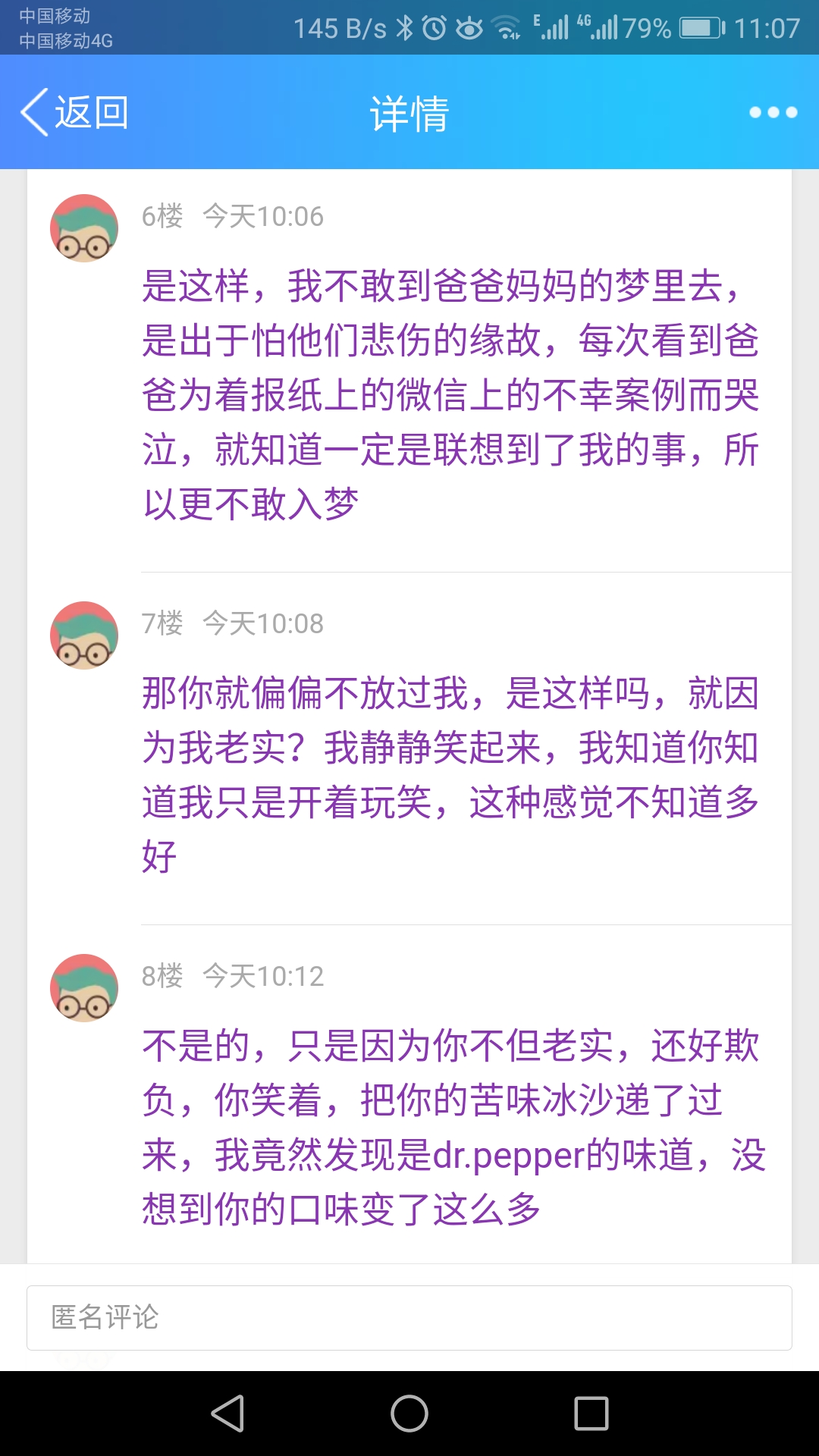 不是的,只是因为你不但老实,还好欺负,你笑着,把你的苦味冰沙递了过来,我竟然发现是dr.pepper的味道,没想到你的口味变了这么多
