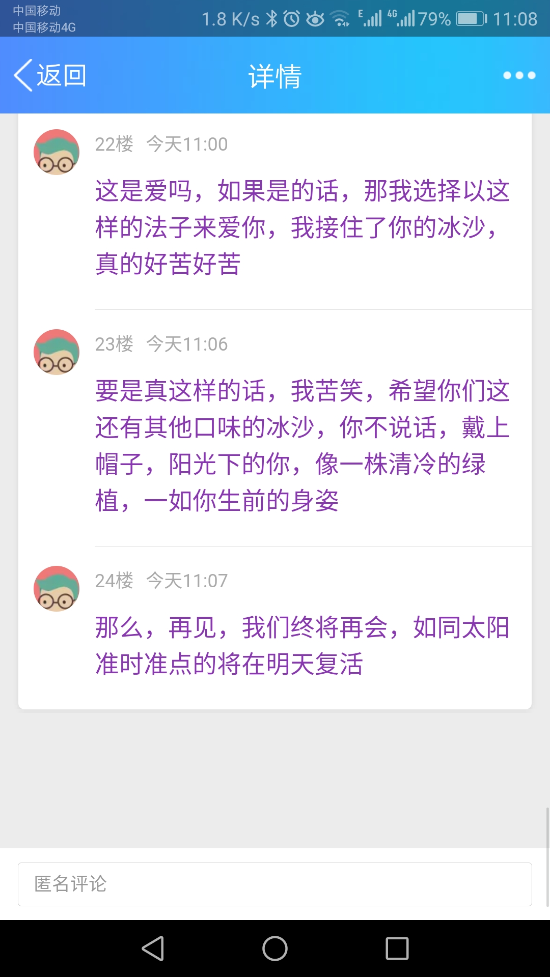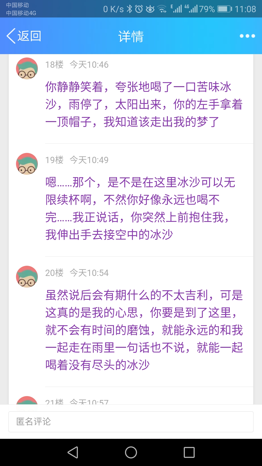虽然说后会有期什么的不太吉利,可是这真的是我的心思,你要是到了这里,就不会有时间的磨蚀,就能永远的和我一起走在雨里一句话也不说,就能一起喝着没有尽头的冰沙