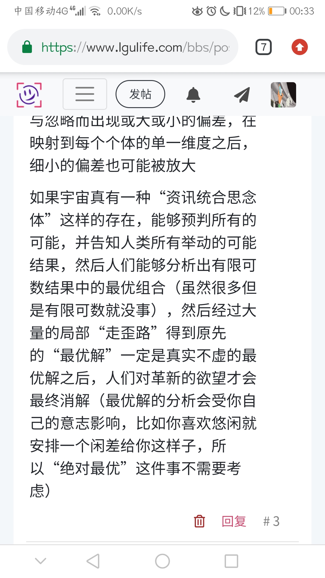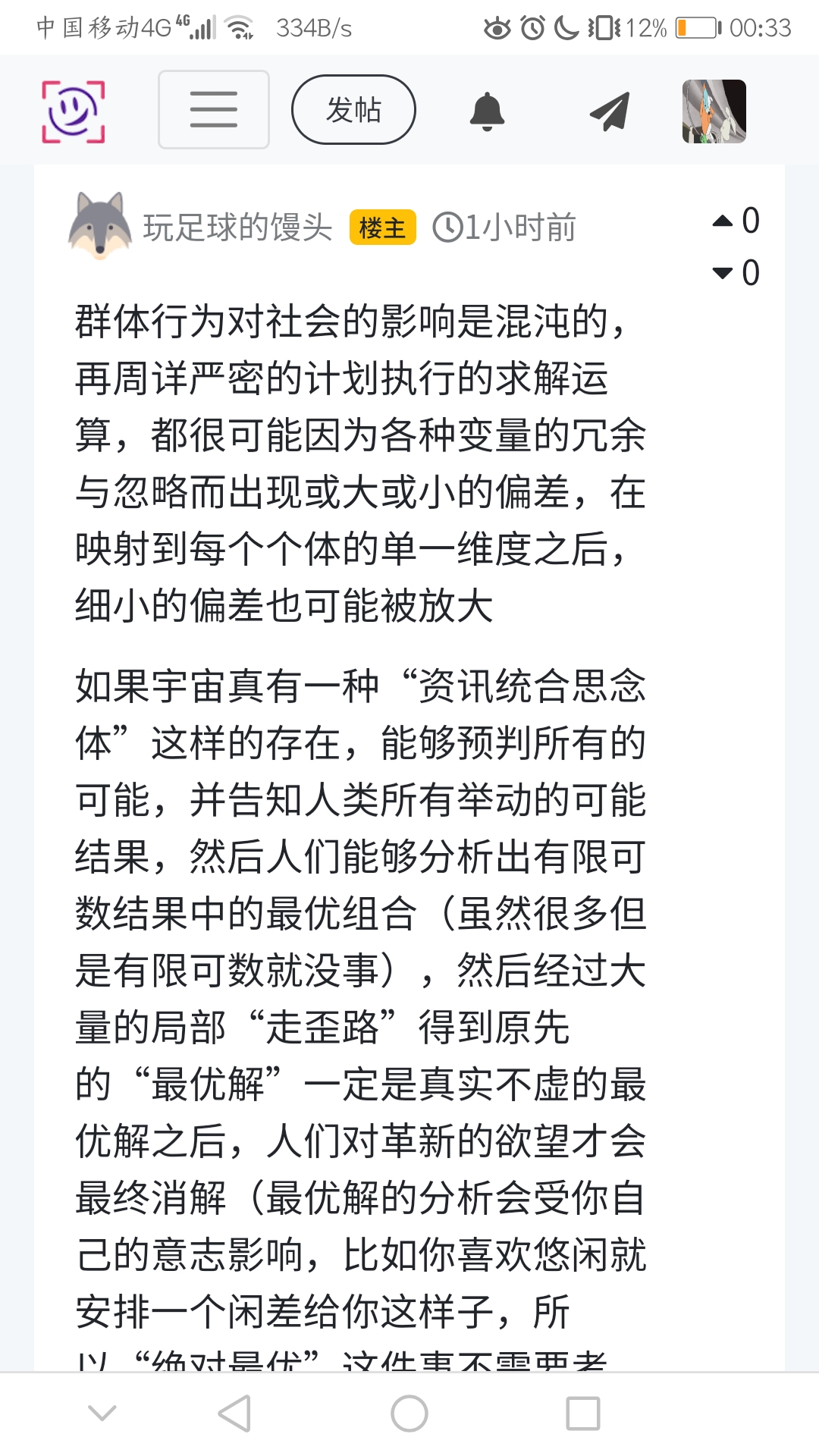 如果宇宙真有一种“资讯统合思念体”这样的存在,能够预判所有的可能,并告知人类所有举动的可能结果,然后人们能够分析出有限可数结果中的最优组合(虽然很多但是有限可数就没事),然后经过大量的局部“走歪路”得到原先的“最优解”一定是真实不虚的最优解之后,人们对革新的欲望才会最终消解(最优解的分析会受你自己的意志影响,比如你喜欢悠闲就安排一个闲差给你这样子,所以“绝对最优”这件事不需要考虑)