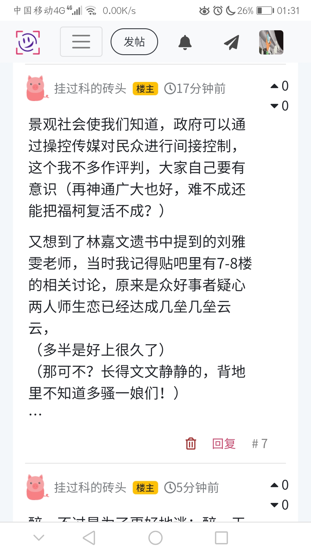 又想到了林嘉文遗书中提到的刘雅雯老师,当时我记得贴吧里有7-8楼的相关讨论,原来是众好事者疑心两人师生恋已经达成几垒几垒云云,