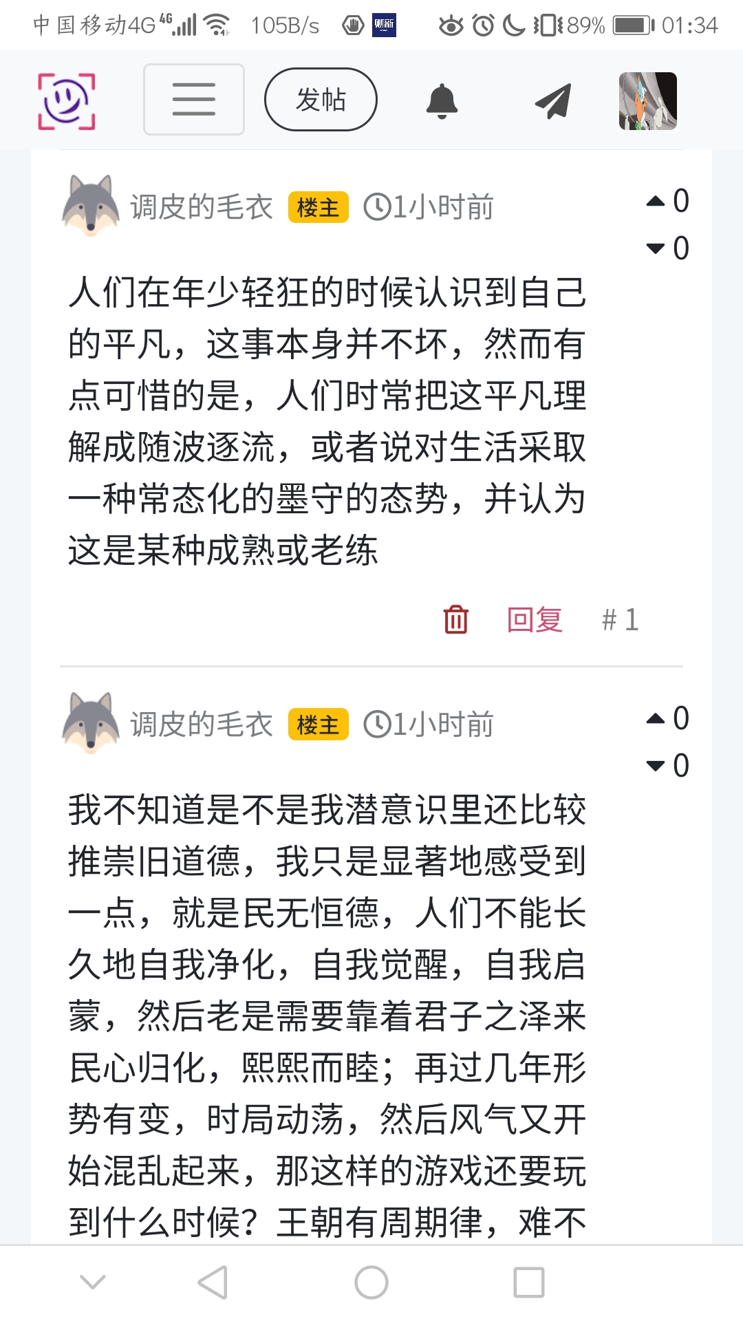 我不知道是不是我潜意识里还比较推崇旧道德,我只是显著地感受到一点,就是民无恒德,人们不能长久地自我净化,自我觉醒,自我启蒙,然后老是需要靠着君子之泽来民心归化,熙熙而睦;再过几年形势有变,时局动荡,然后风气又开始混乱起来,那这样的游戏还要玩到什么时候?王朝有周期律,难不成社会道德风气也要有周期律吗?