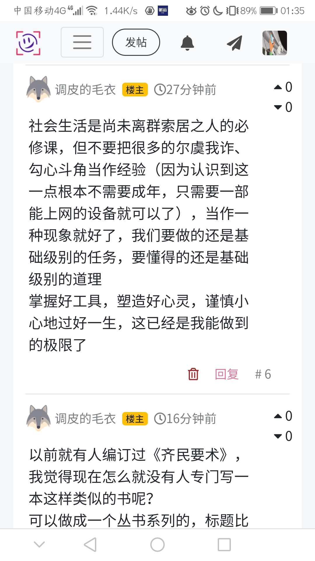 社会生活是尚未离群索居之人的必修课,但不要把很多的尔虞我诈、勾心斗角当作经验(因为认识到这一点根本不需要成年,只需要一部能上网的设备就可以了),当作一种现象就好了,我们要做的还是基础级别的任务,要懂得的还是基础级别的道理