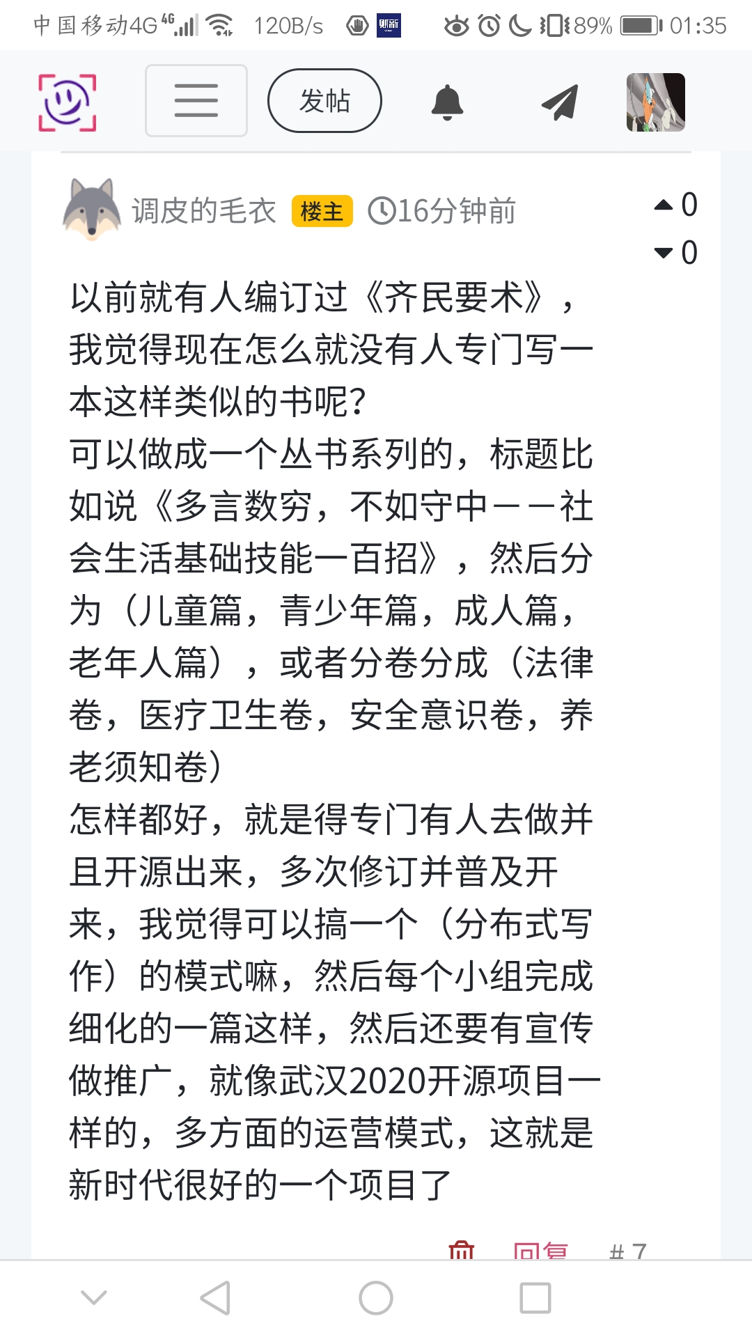 怎样都好,就是得专门有人去做并且开源出来,多次修订并普及开来,我觉得可以搞一个(分布式写作)的模式嘛,然后每个小组完成细化的一篇这样,然后还要有宣传做推广,就像武汉2020开源项目一样的,多方面的运营模式,这就是新时代很好的一个项目了