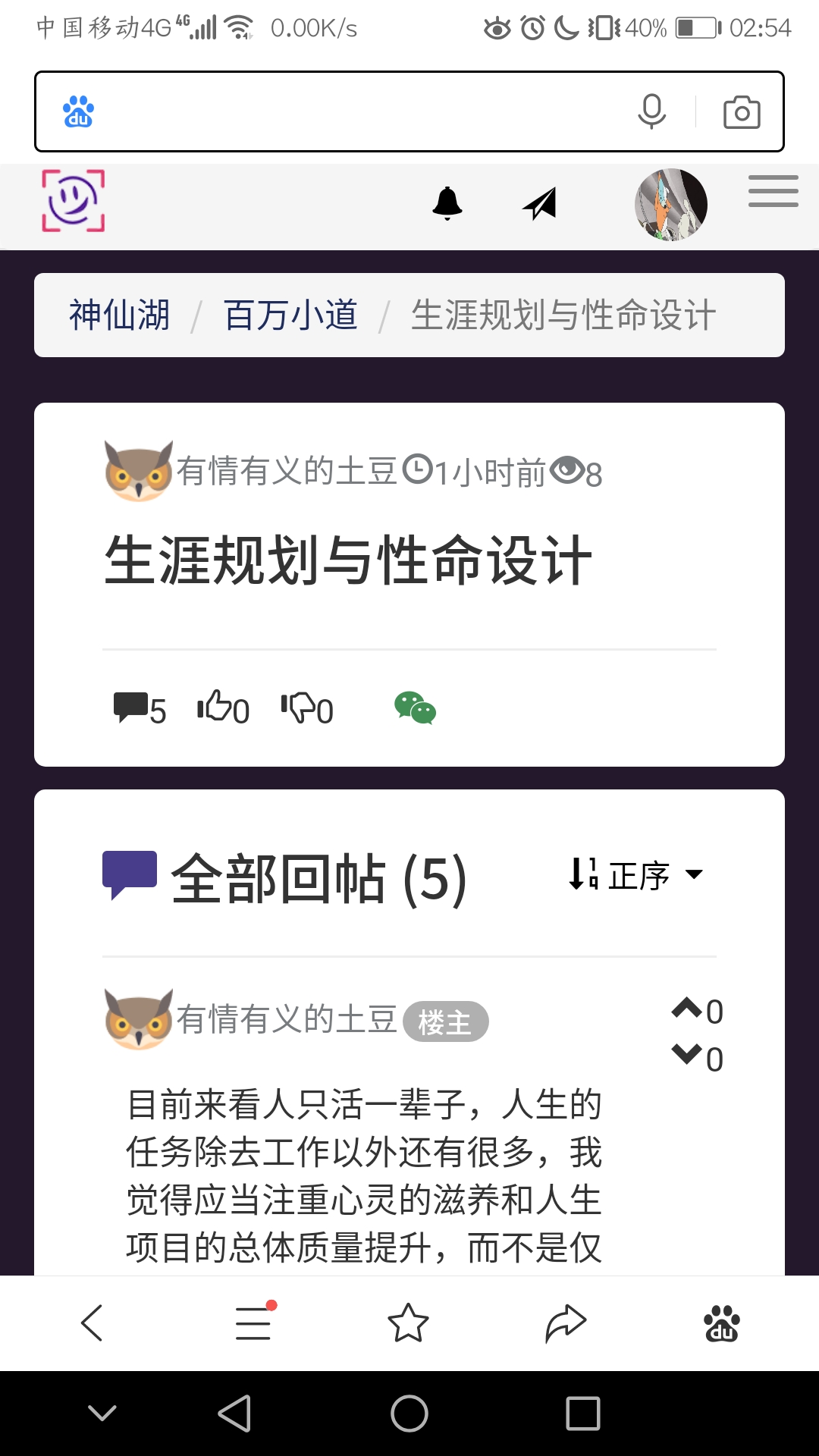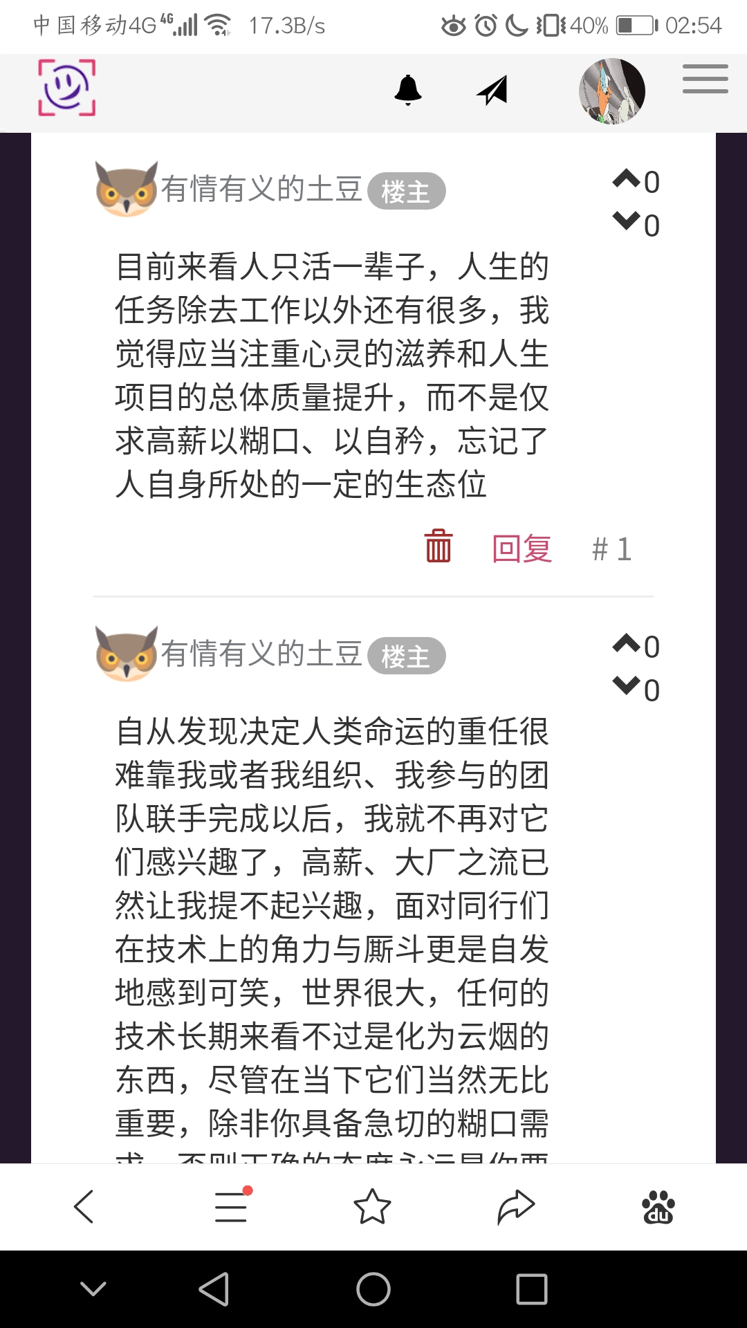 目前来看人只活一辈子,人生的任务除去工作以外还有很多,我觉得应当注重心灵的滋养和人生项目的总体质量提升,而不是仅求高薪以糊口、以自矜,忘记了人自身所处的一定的生态位