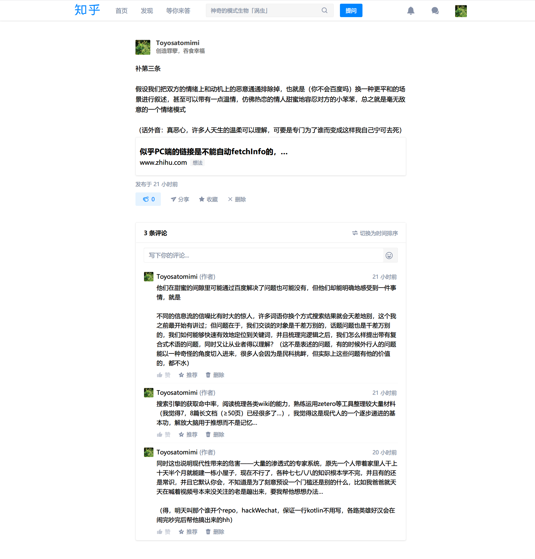 https://web.archive.org/web/20220316070908/https://www.zhihu.com/pin/1271181126825484288https://web.archive.org/web/20220316070932/https://www.zhihu.com/pin/1270548894561738752https://web.archive.org/web/20220316071015/https://www.zhihu.com/pin/1270879921683099648