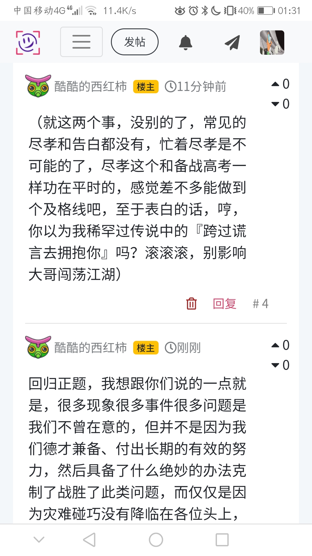 (就这两个事,没别的了,常见的尽孝和告白都没有,忙着尽孝是不可能的了,尽孝这个和备战高考一样功在平时的,感觉差不多能做到个及格线吧,至于表白的话,哼,你以为我稀罕过传说中的『跨过谎言去拥抱你』吗?滚滚滚,别影响大哥闯荡江湖)