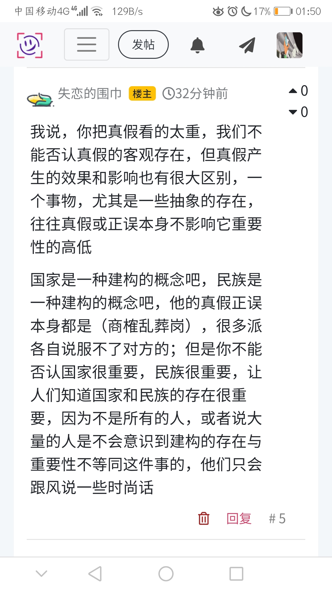 国家是一种建构的概念吧,民族是一种建构的概念吧,他的真假正误本身都是(商榷乱葬岗),很多派各自说服不了对方的;但是你不能否认国家很重要,民族很重要,让人们知道国家和民族的存在很重要,因为不是所有的人,或者说大量的人是不会意识到建构的存在与重要性不等同这件事的,他们只会跟风说一些时尚话