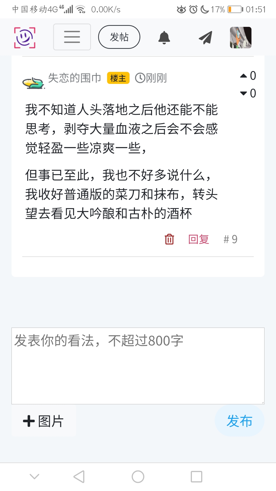 我不知道人头落地之后他还能不能思考,剥夺大量血液之后会不会感觉轻盈一些凉爽一些,