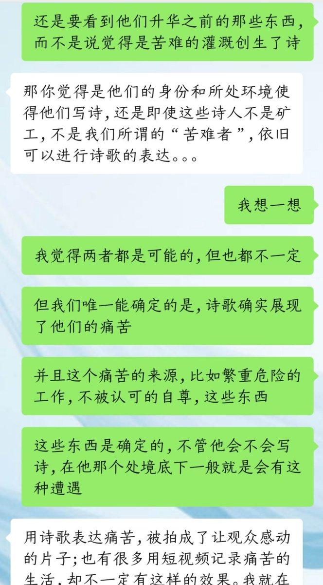 那你觉得是他们的身份和所处环境使得他们写诗,还是即使这些诗人不是矿工,不是我们所谓的“苦难者”,依旧可以进行诗歌的表达。。。