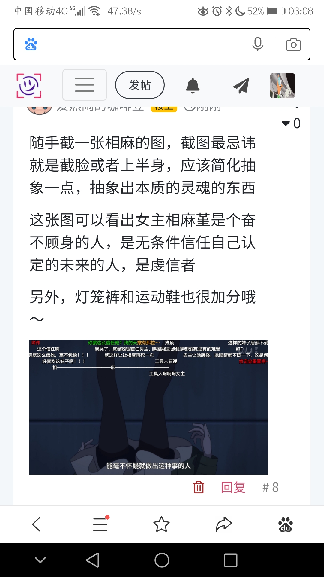 这张图可以看出女主相麻堇是个奋不顾身的人,是无条件信任自己认定的未来的人,是虔信者