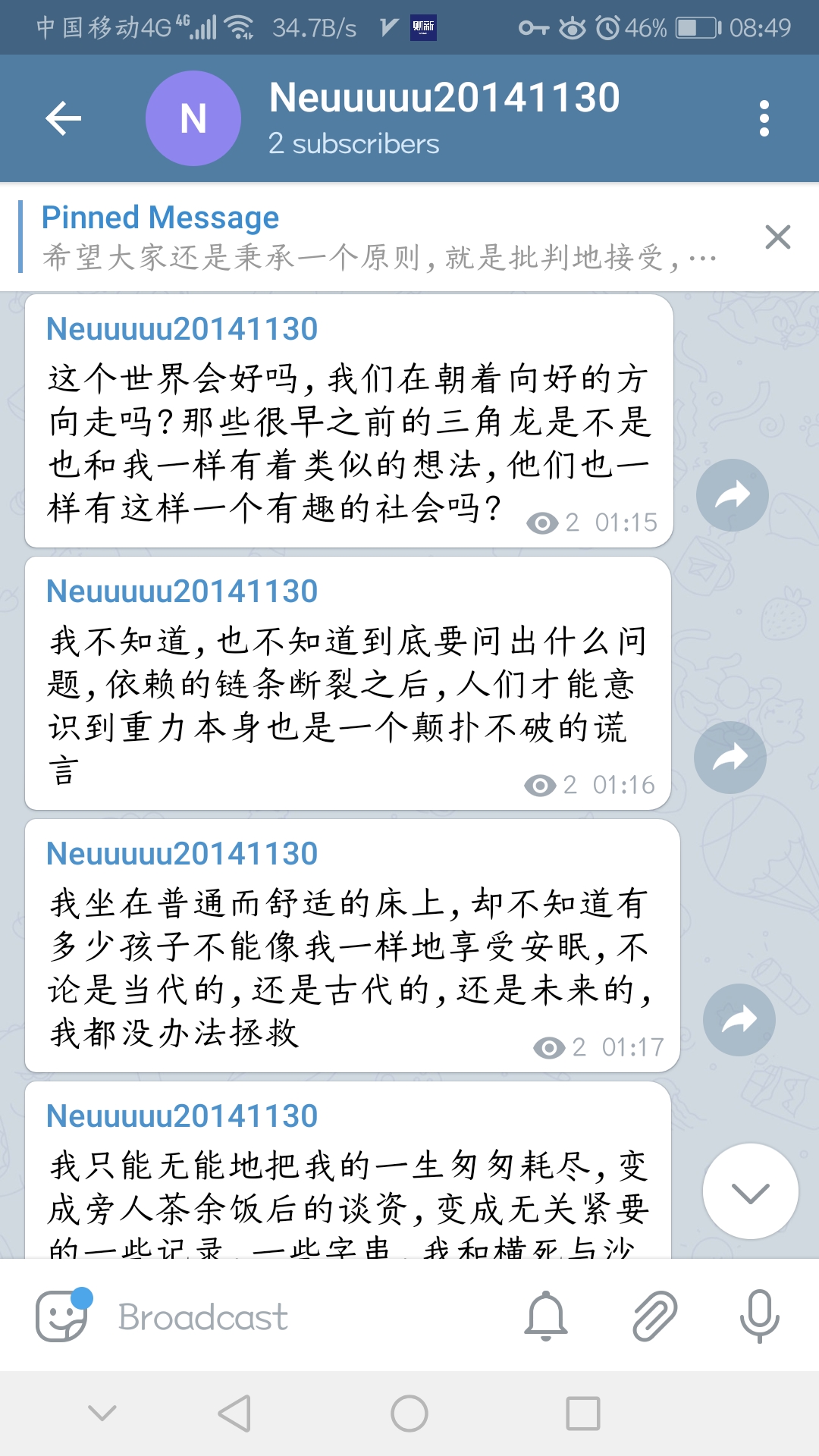 对了,我在与琴春见面之前,其实还看了一下琴春的微信,他的微信我没有加,我研究起他微信的界面来,他似乎有不同的心情栏(比如说,开心,忙碌,疲惫一类的状态栏,用不同的颜色表示),还有就是你要点进去一个界面,然后把一个按钮(忘了是什么)给它弄成黄色的那个选项,随后他的朋友圈内容就出现了,前两个和编程相关,应该是他自己的研究成果,具体的我也记的不太清楚了