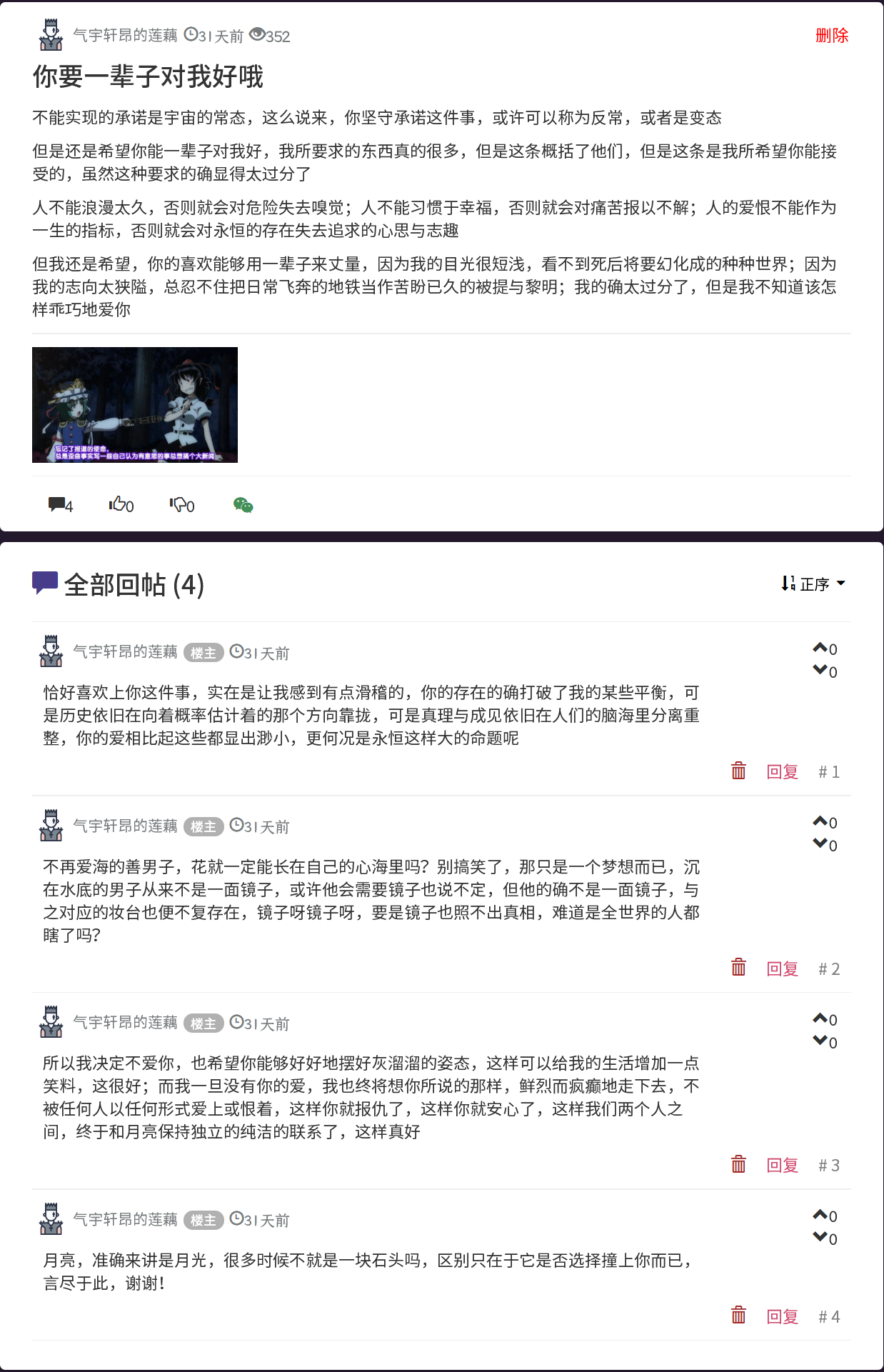 想被爱我的人和我爱的人长久地记住 发表于 2019-12-02 更新于 2025-11-27 本文字数: 730 阅读时长 ≈ 3 分钟 原帖:https://web.archive.org/web/20210308174300/https://www.lgulife.com/bbs/post/461 阅读全文 »