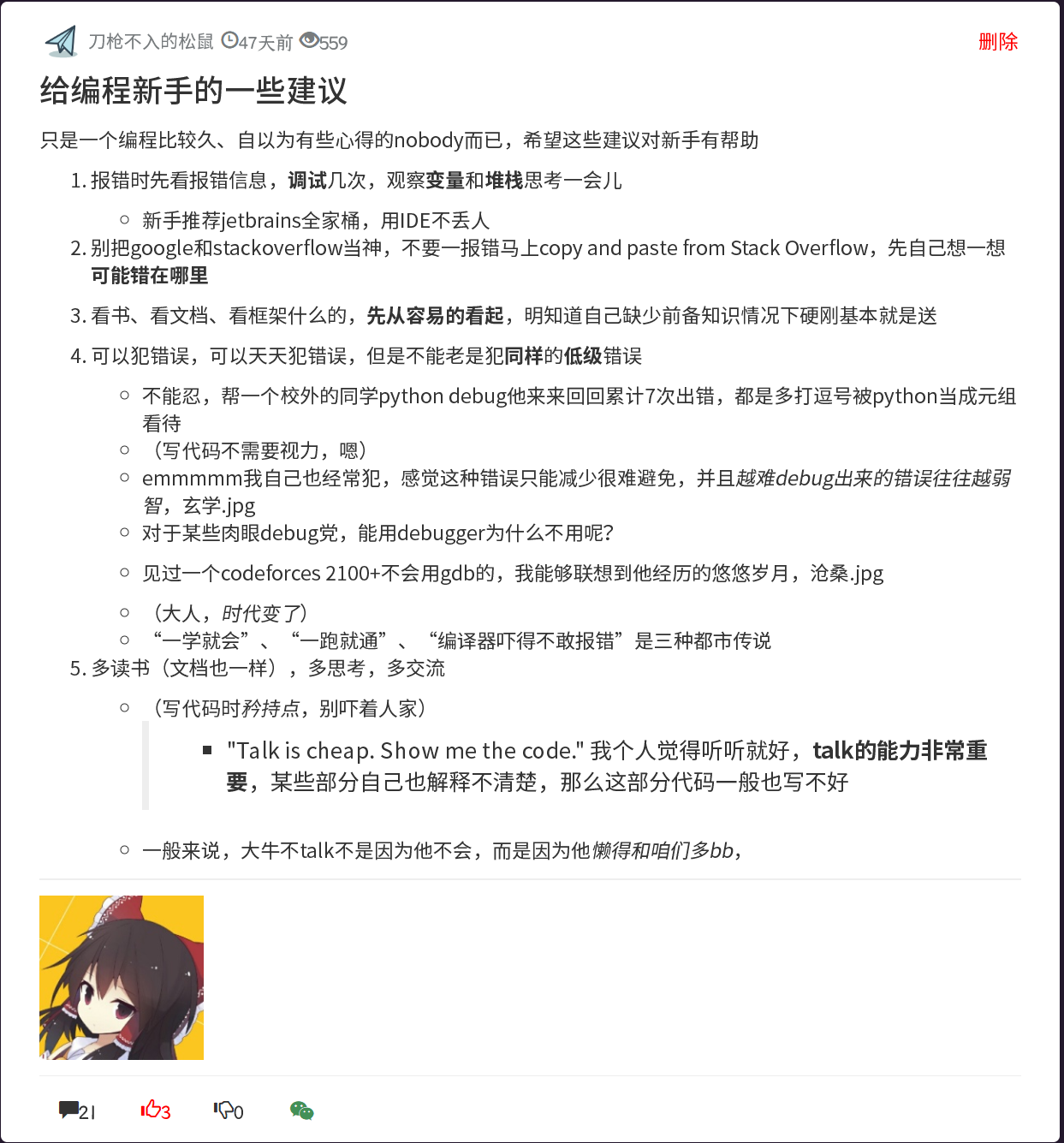 有才华的人唾弃金光闪闪的讲座 发表于 2019-11-28 更新于 2025-11-27 本文字数: 209 阅读时长 ≈ 1 分钟 原帖:https://web.archive.org/web/20210308203228/https://www.lgulife.com/bbs/post/405/ 阅读全文 »