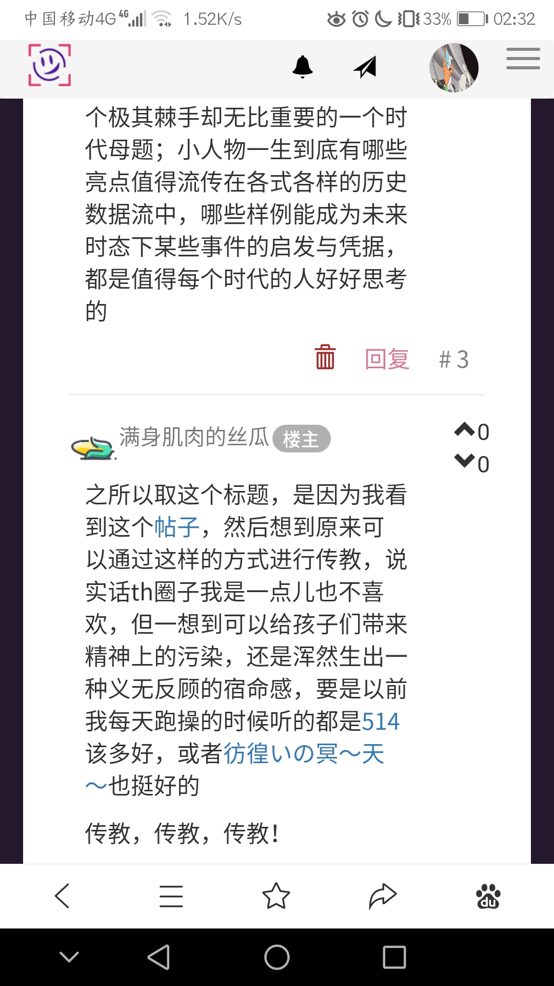之所以取这个标题,是因为我看到这个帖子,然后想到原来可以通过这样的方式进行传教,说实话th圈子我是一点儿也不喜欢,但一想到可以给孩子们带来精神上的污染,还是浑然生出一种义无反顾的宿命感,要是以前我每天跑操的时候听的都是514该多好,或者彷徨いの冥~天~也挺好的