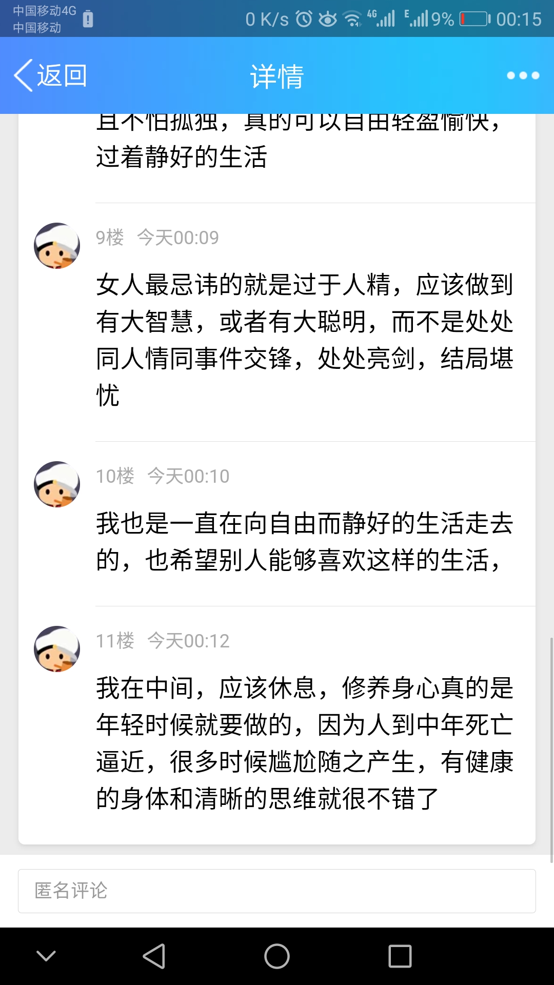 我在中间,应该休息,修养身心真的是年轻时候就应该做的,因为人到中年死亡逼近,很多时候尴尬随之产生,有健康的身体和清晰的思维就很不错了