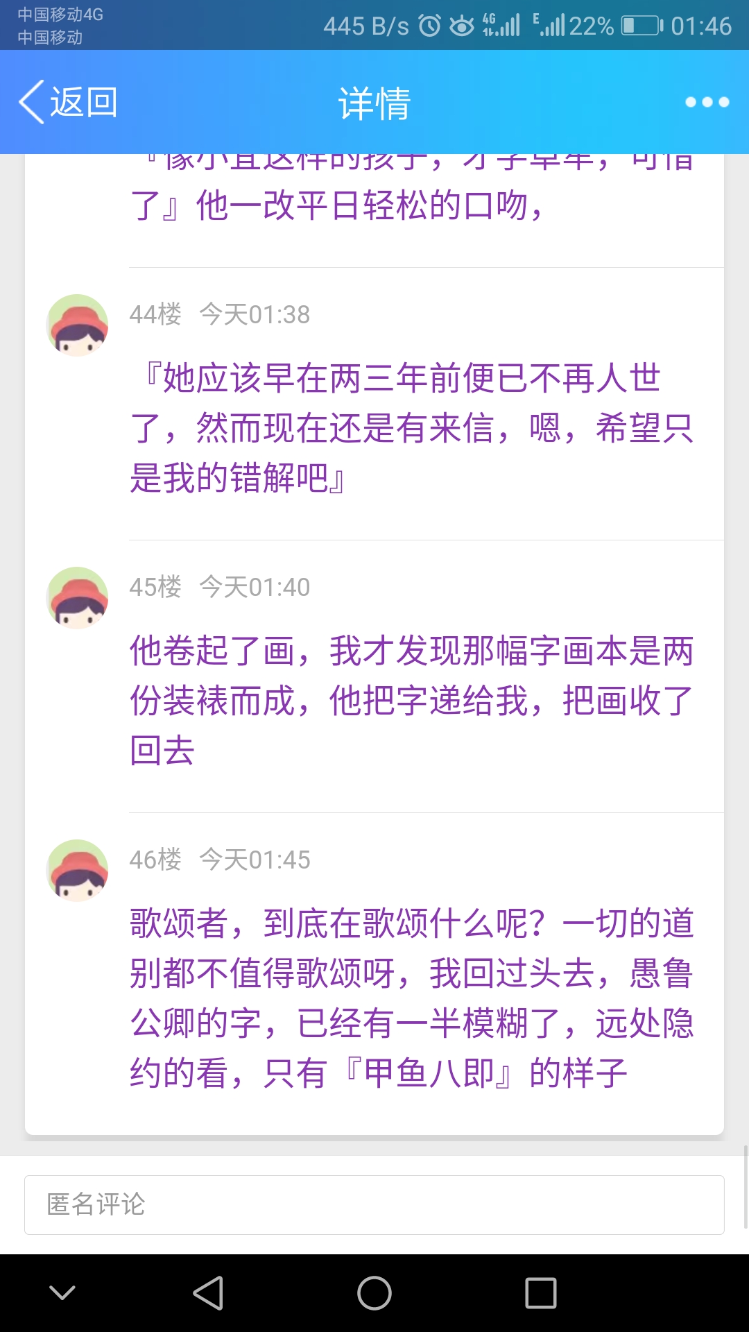 歌颂者,到底在歌颂什么呢?一切的道别都不值得歌颂呀,我回过头去,愚鲁公卿的字,已经有一半模糊了,远处隐约的看,只有『甲鱼八即』的样子