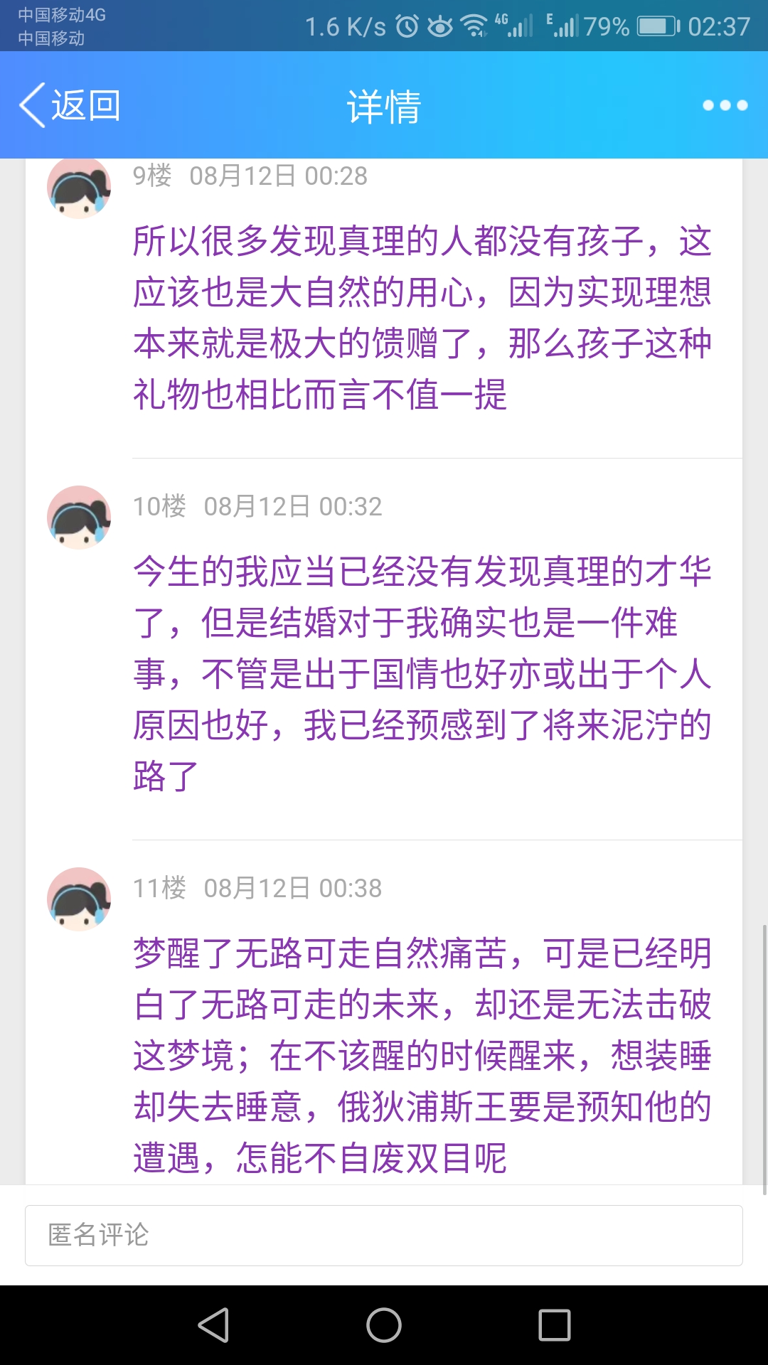 所以很多发现真理的人都没有孩子,这应该也是大自然的用心,因为实现理想本身就是极大的馈赠了,那么孩子这种礼物相比之下也不值一提