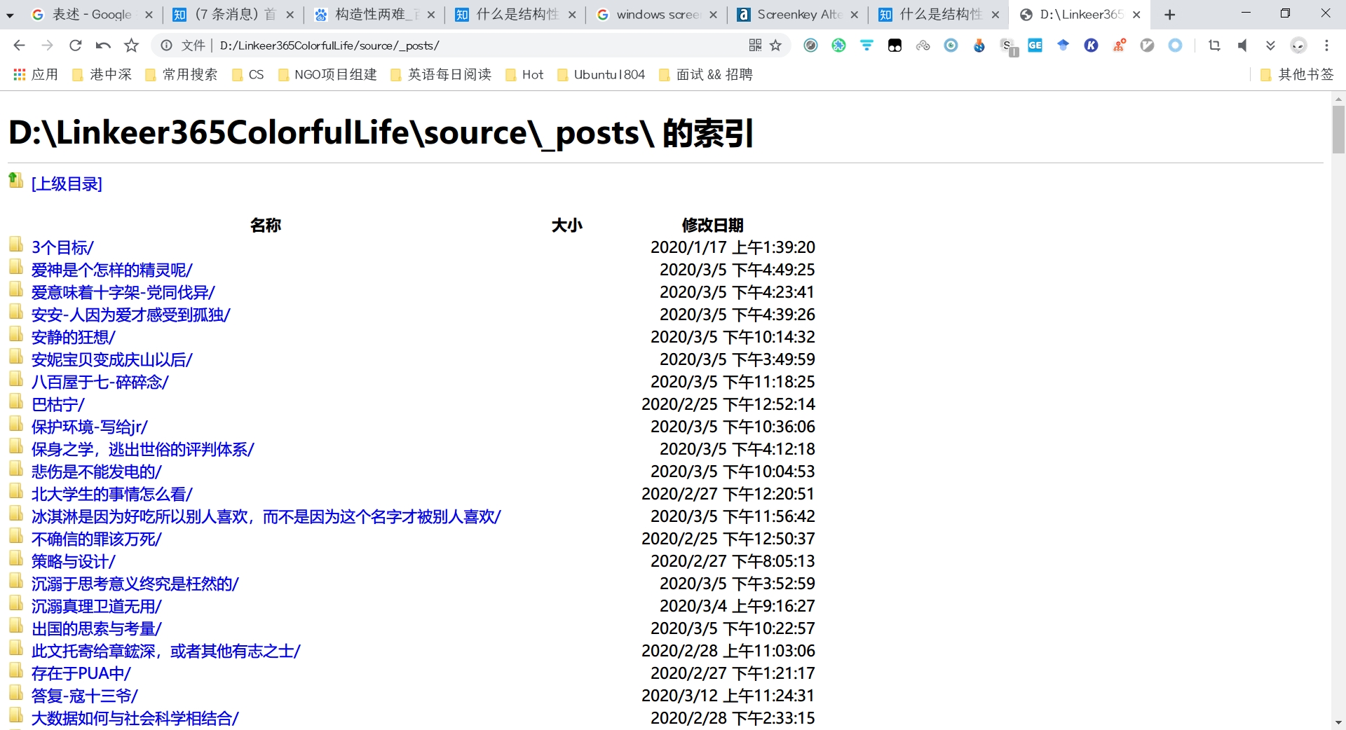网页浏览器(如谷歌浏览器、360等)本质是一个类似于“我的电脑”(或directory opus、total commander等)一样的增强版资源管理器,他们继承了资源管理器许多功能,例如,你可以试着将资源管理器地址栏中的地址(这里举的例子是D:\Linkeer365ColorfulLife\source\_posts),复制到网页浏览器内的网址栏中试试1: