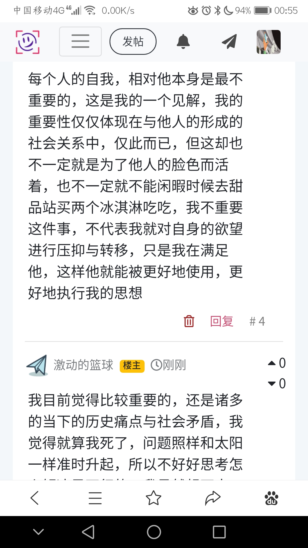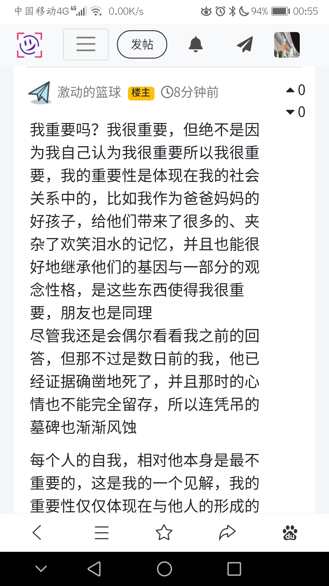 每个人的自我,相对他本身是最不重要的,这是我的一个见解,我的重要性仅仅体现在与他人的形成的社会关系中,仅此而已,但这却也不一定就是为了他人的脸色而活着,也不一定就不能闲暇时候去甜品站买两个冰淇淋吃吃,我不重要这件事,不代表我就对自身的欲望进行压抑与转移,只是我在满足他,这样他就能被更好地使用,更好地执行我的思想