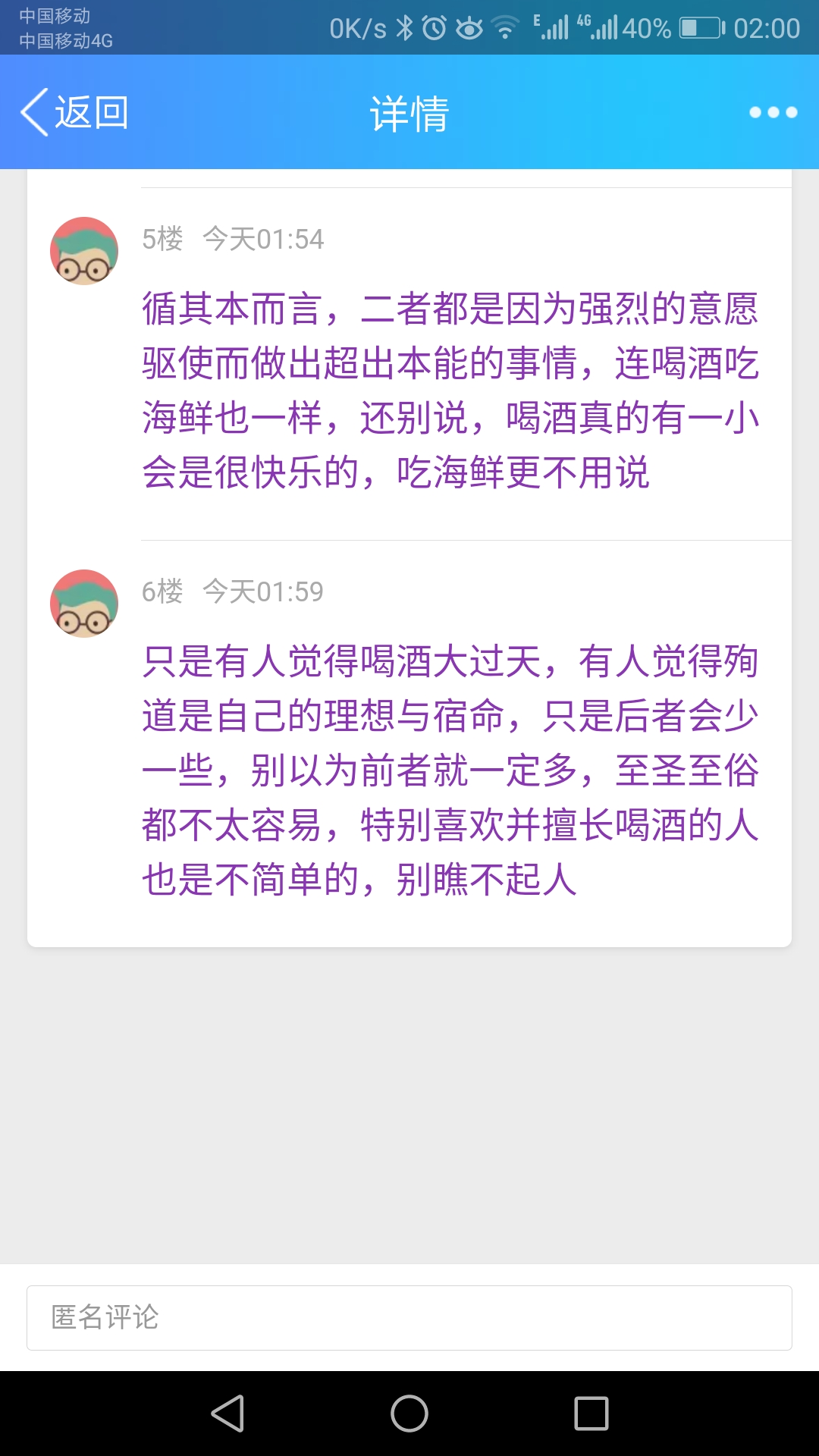 只是有人觉得喝酒大过天,有人觉得殉道是自己的理想与宿命,当然后者会少一些,别以为前者就一定多,至圣至俗都不太容易,特别喜欢喝酒、特别擅长喝酒的人也是不简单的,别看不起人