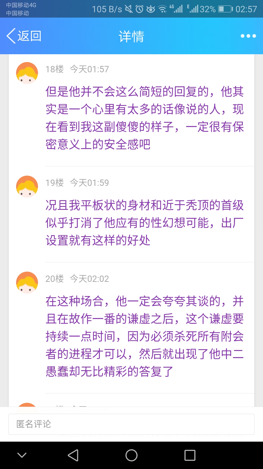 在这种场合,他一定会夸夸其谈的,并且在故作一番的谦虚之后,这个谦虚要持续一点时间,因为必须杀死所有附会者的进程才可以,然后就出现了他中二愚蠢却无比精彩的答复了