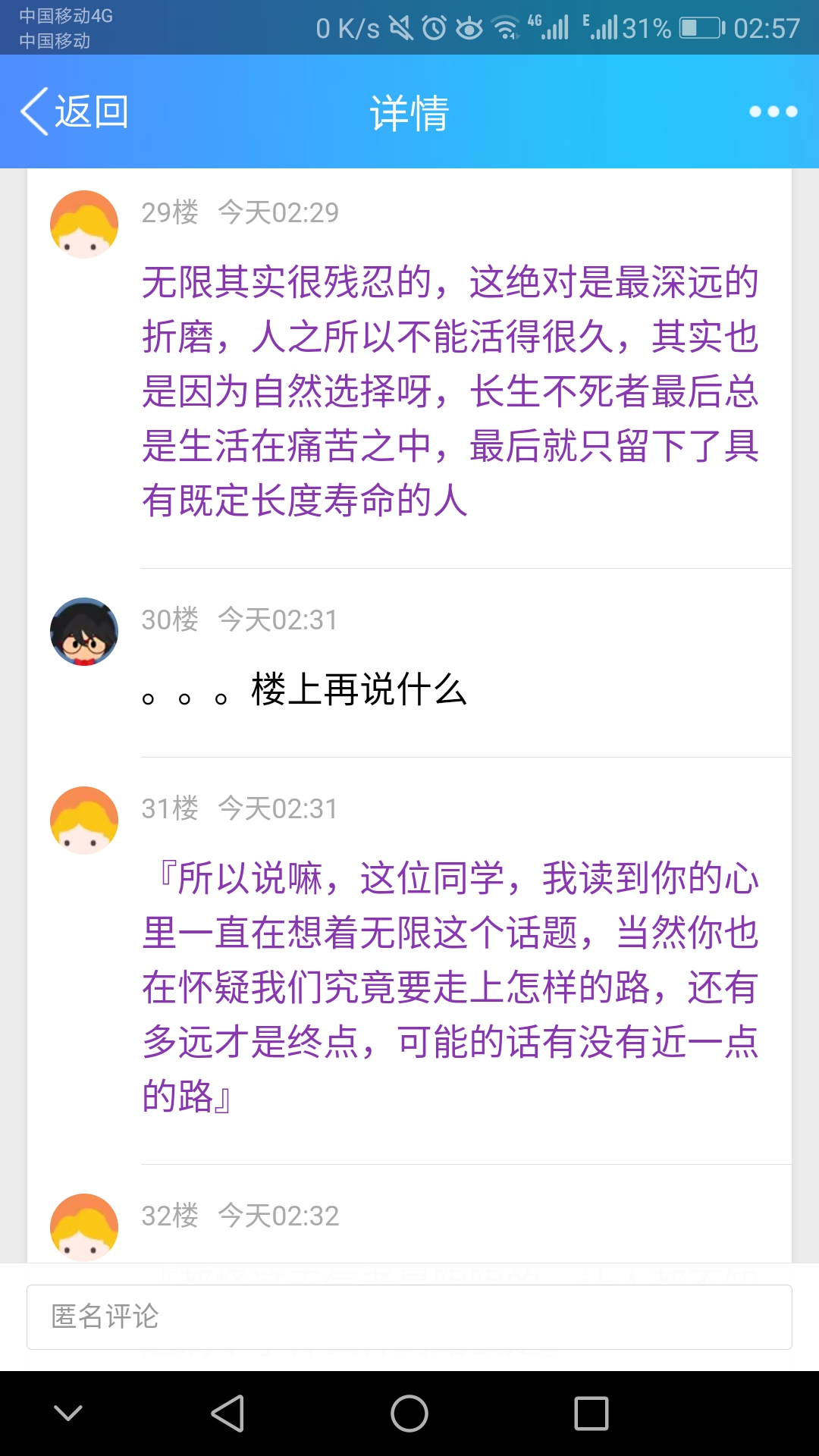 无限其实很残忍的,这绝对是最深远的折磨,人之所以不能活得很久,其实也是因为自然选择呀,长生不死者最后总是生活在痛苦之中,最后就只留下了具有既定长度寿命的人